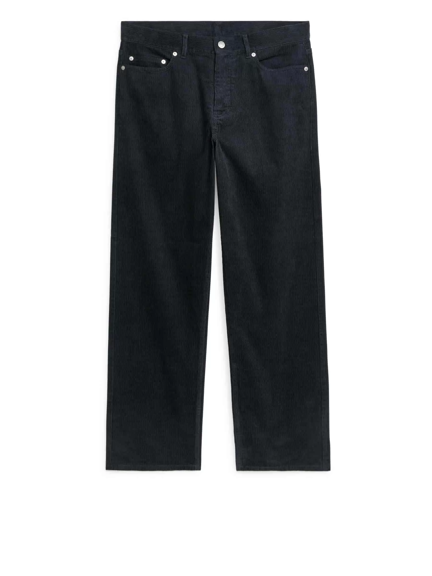 Hose aus Baumwollcord. Ein klassischer 5-Pocket-Stil mit mittelhoher Taille. Eine lockere Silhouette mit gerade geschnittenen Beinen.