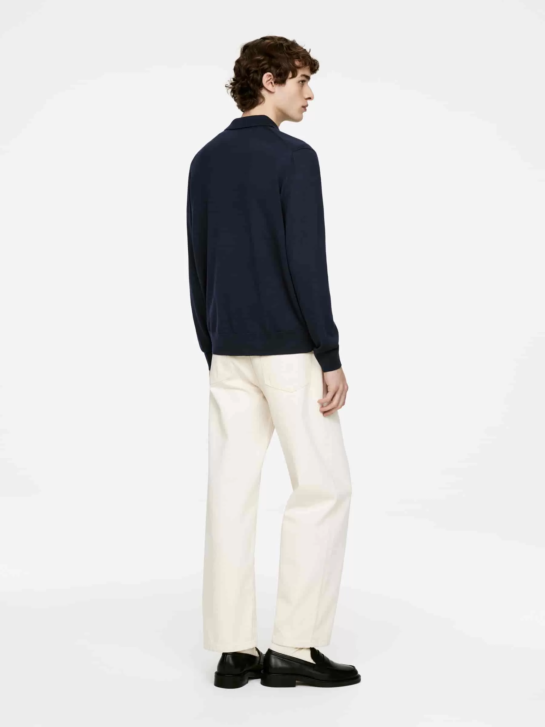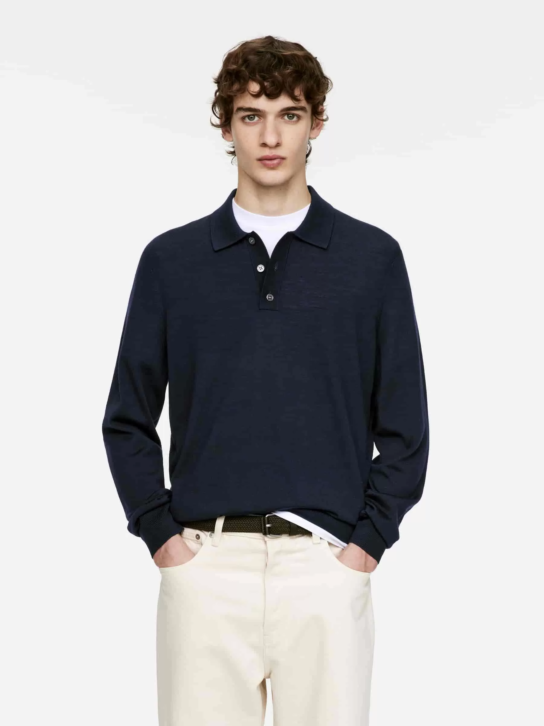 Feinstrick-Polopullover aus Merinowolle. Dieser Stil fühlt sich weich an und hat eine leicht glänzende Oberfläche. Der Pullover ist mit einem Kragen und einer geknöpften halben Knopfleiste versehen. Der Saum und die Bündchen sind aus Rippstrick. Dieser Pullover enthält 100 % RWS-Wolle, zertifiziert durch die Kontrollunion 1244999. Produkte, die nach dem Responsible Wool Standard (RWS) zertifiziert sind, enthalten Wollfasern von Farmen, die unabhängig nach Tierschutz- und Landbewirtschaftungsanforderungen zertifiziert sind.