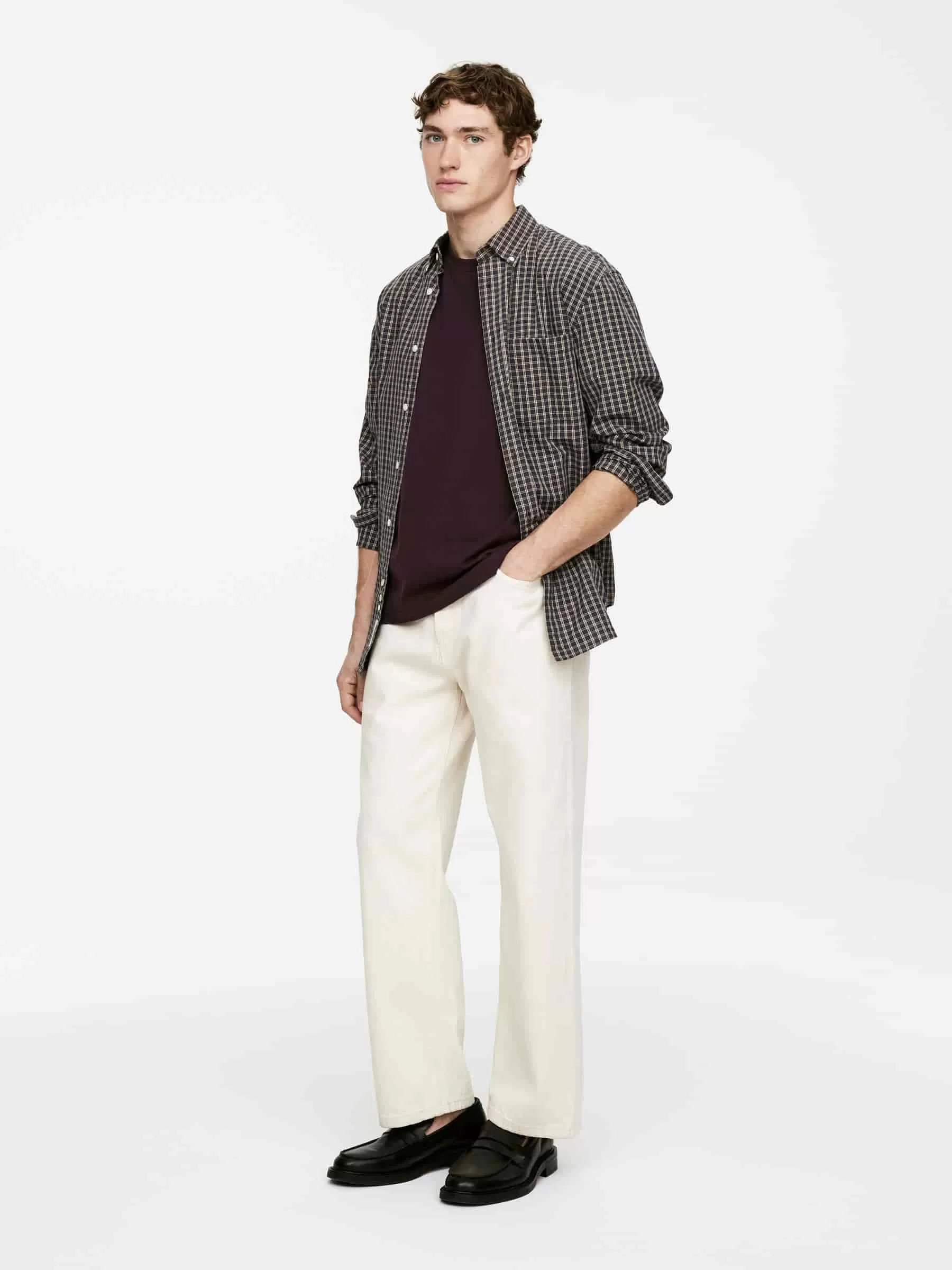 Klassischer T-Shirt-Schnitt mit Rundhalsausschnitt für eine normale Passform. Es besteht aus 220 GSM Single Jersey, was darauf hinweist, dass es sich um die mittelschwere Version der Standard-T-Shirts von ARKET handelt.