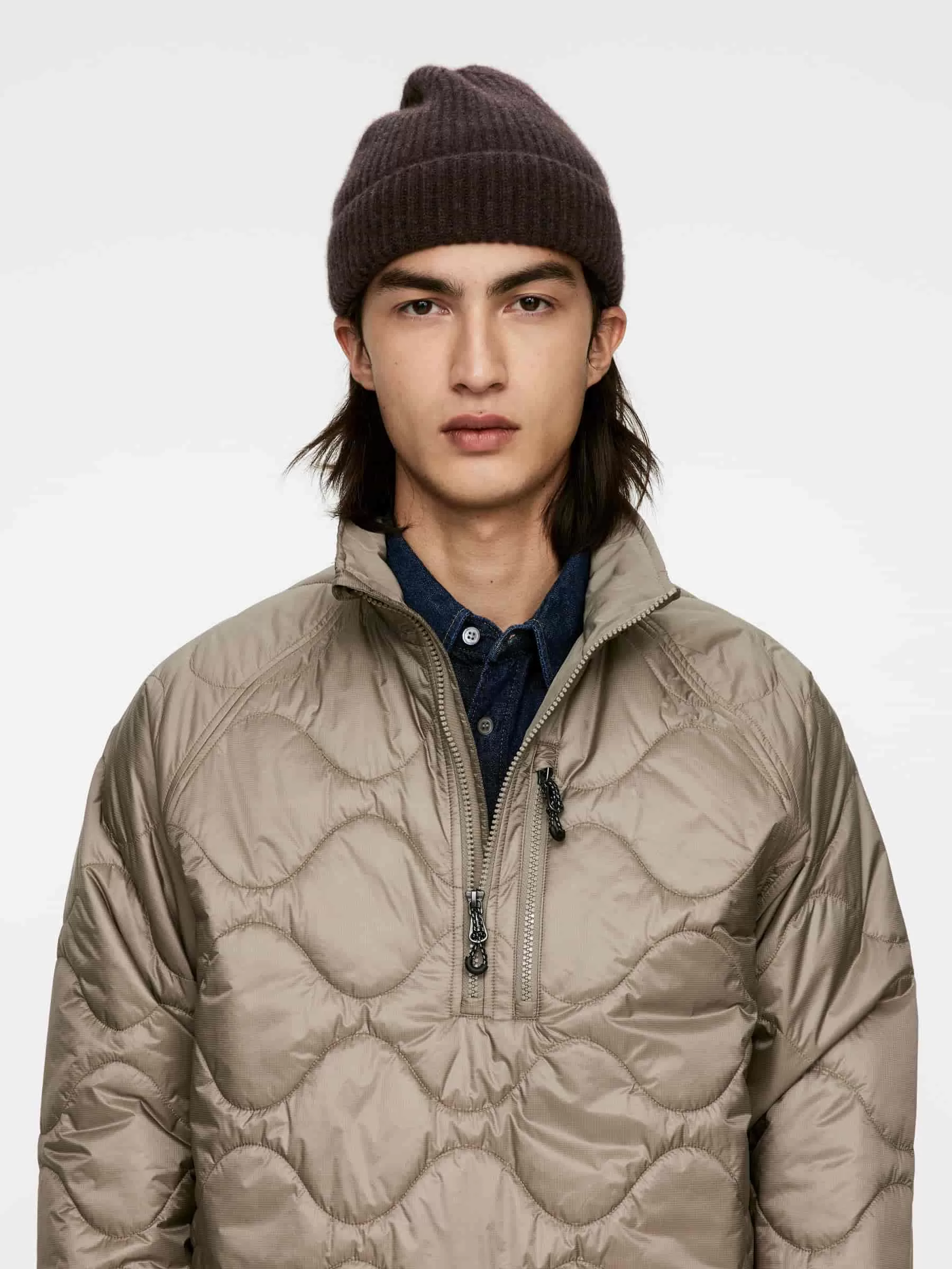 Mütze gestrickt im Vollstrickmuster aus einer weichen, wärmenden Mischung aus Kaschmir und Merinowolle. Mit einer Falte von 6 cm gestaltet.