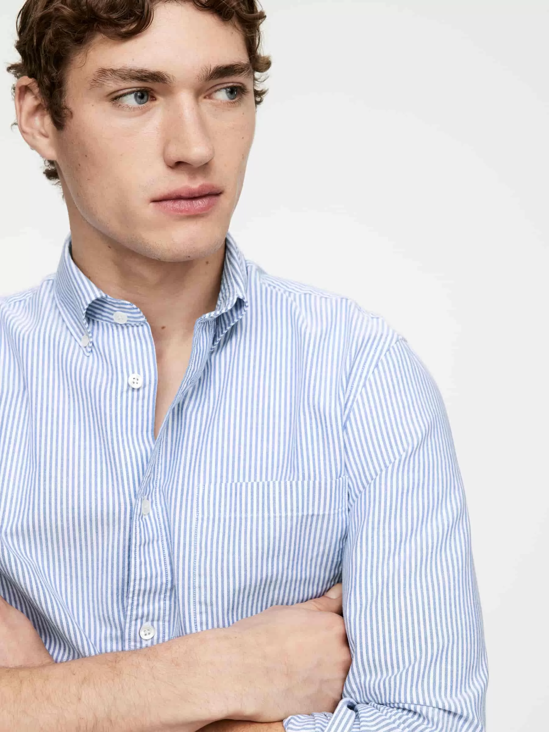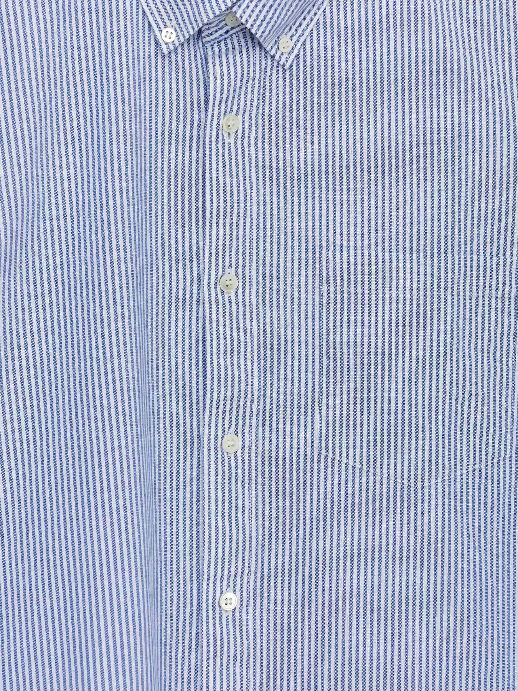 Dieses Hemd ist eines der archetypischen Designs von ARKET, ein normal geschnittenes Hemd mit Button-Down-Kragen. Diese Iteration ist aus einem Oxford-Gewebe genäht. Ein lässiger Stil mit normaler Knopfleiste vorne und einer Brusttasche. Abgerundeter Saum.