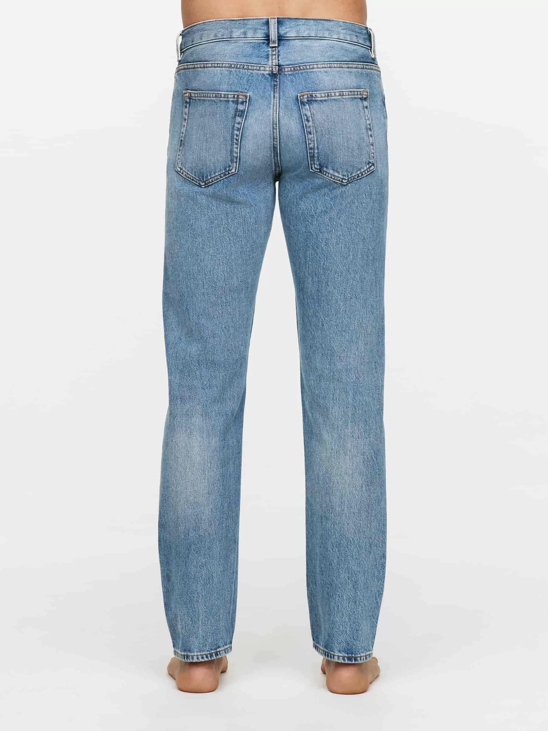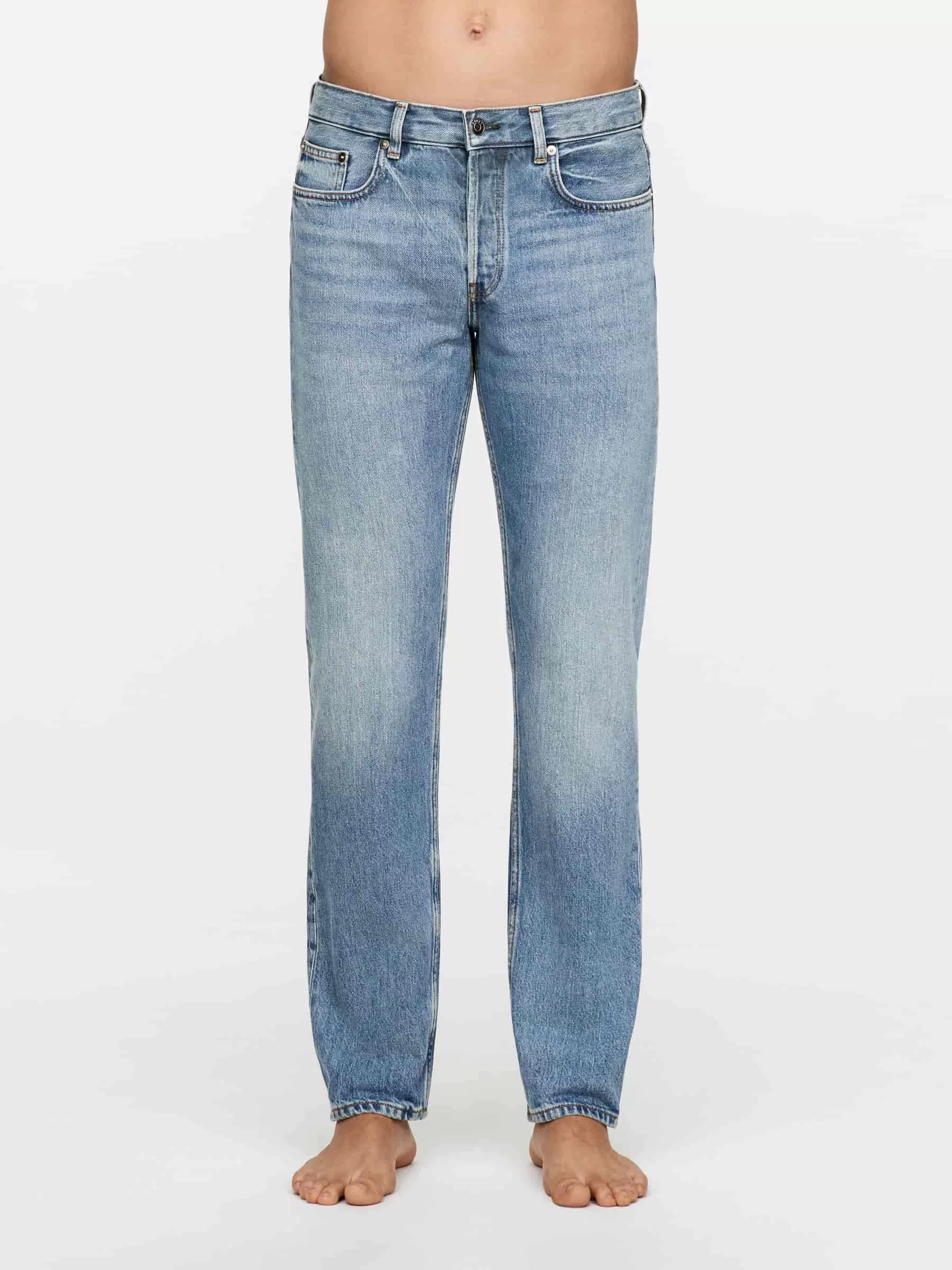PARK ist aus nicht dehnbarem Denim geschnitten und hat eine mittelhohe Taille, eine normale Passform und gerade, leicht schmal zulaufende Beine ab dem Knie. Knopfleiste.