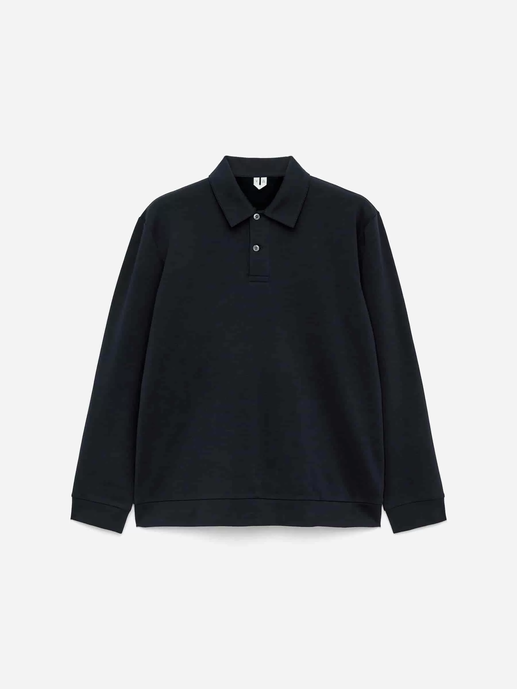 Poloshirt aus einer Baumwoll-Lyocell-Mischung gestrickt. Ein langärmliges Modell mit normalem Kragen und halber Knopfleiste mit zwei Knöpfen. Normale Passform.
