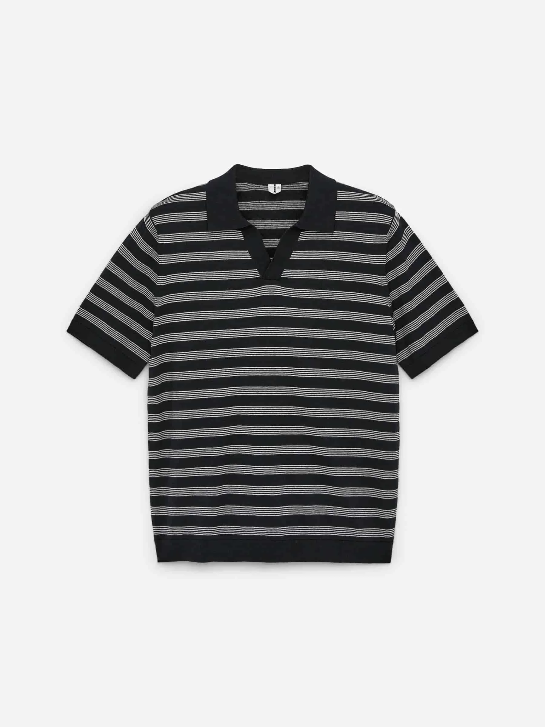 Die Mischung aus Leinen und Baumwolle verleiht diesem Feinstrick-Poloshirt einen weichen, kühlenden Tragekomfort. Ein lässiger Kurzarmstil mit Rippstrickkragen und V-Ausschnitt. Normale Passform.