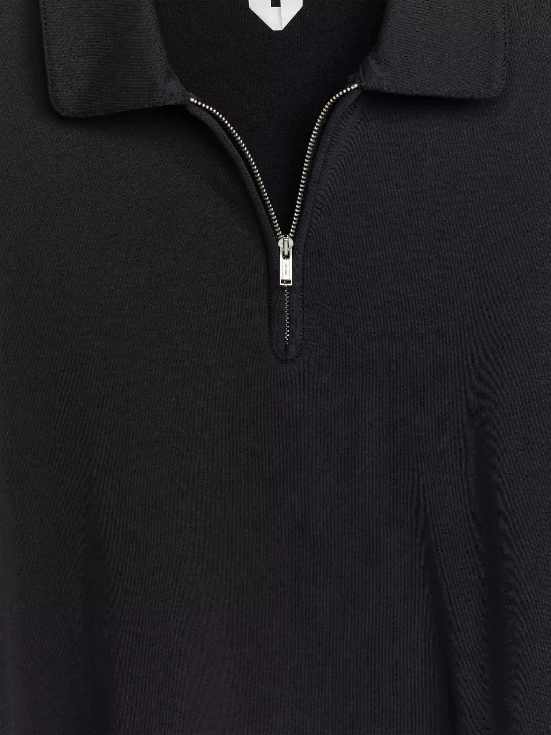 Poloshirt aus weicher, leichter French-Terry-Qualität in einer Baumwoll-Lyocell-Mischung. Mit halbem Reißverschluss, Kragen und Manschetten aus Shell-Stoff.