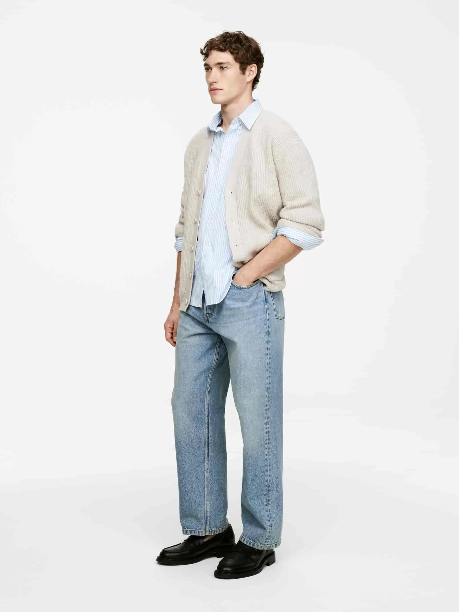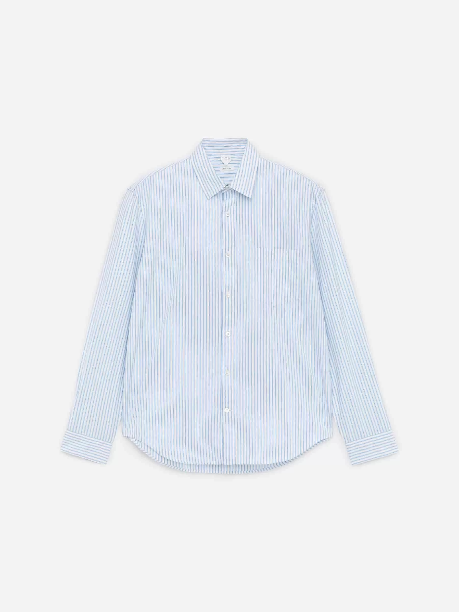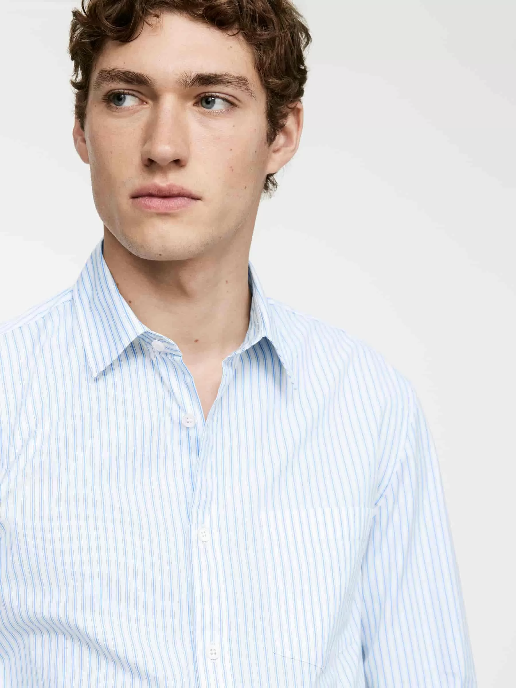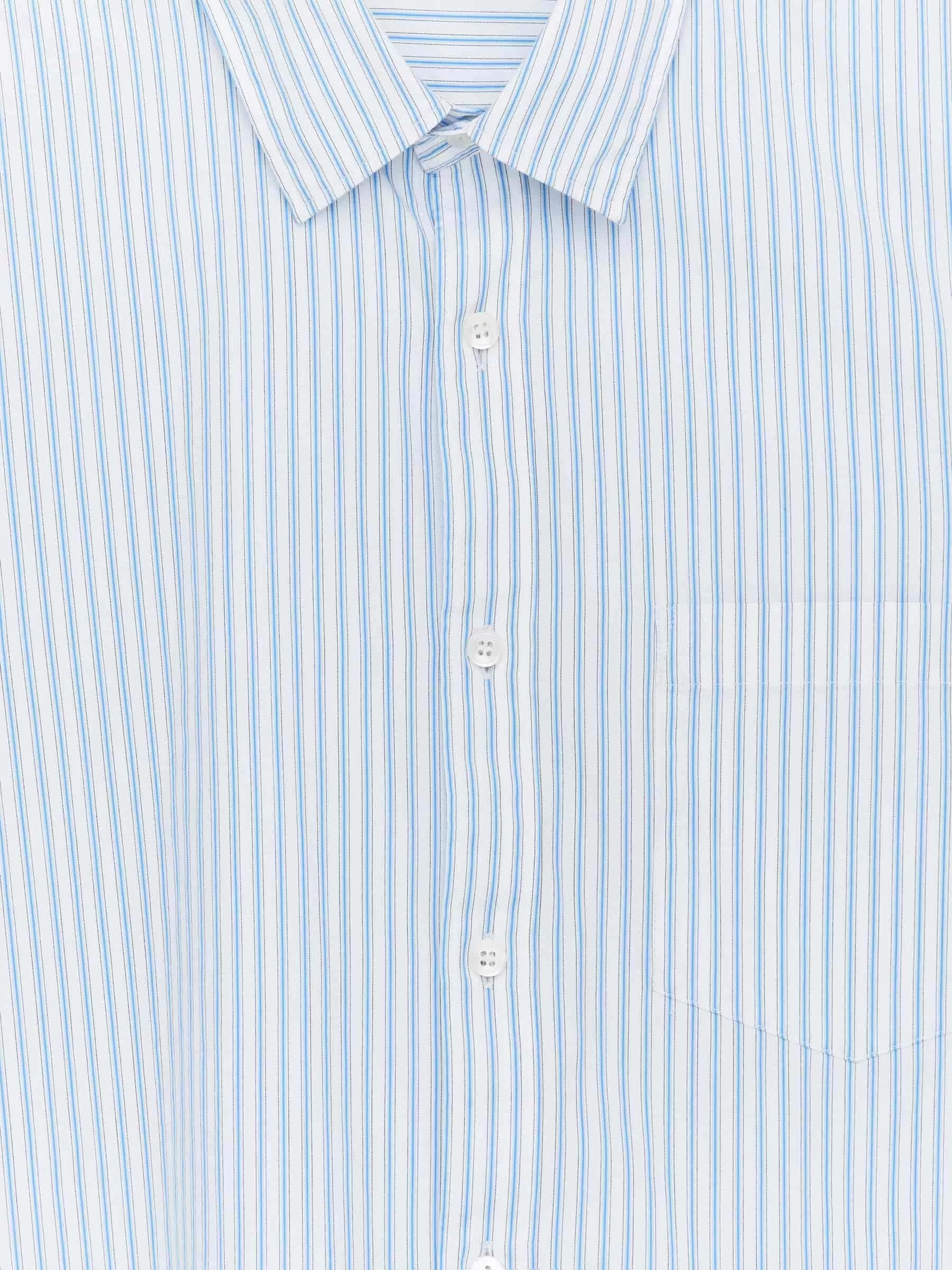 Langärmliges Hemd aus Baumwollpopeline mit einem Muster aus garngefärbten Streifen. Mit spitzem Kragen und einer einzelnen Brusttasche. Geschwungener Saum. Normale Passform.
