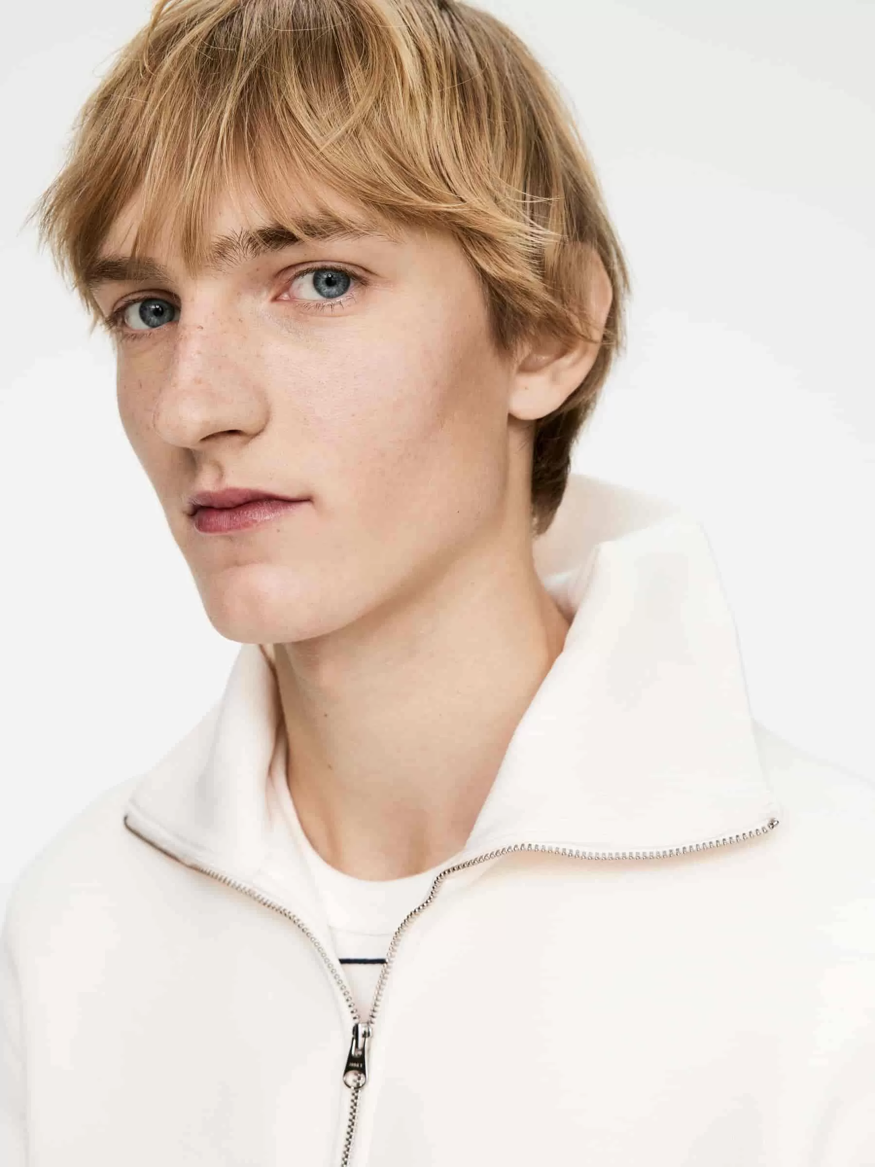 Sweatshirt mit halbem Reißverschluss aus Baumwolle. Mit geripptem Kragen und Bündchen. Normale Passform.