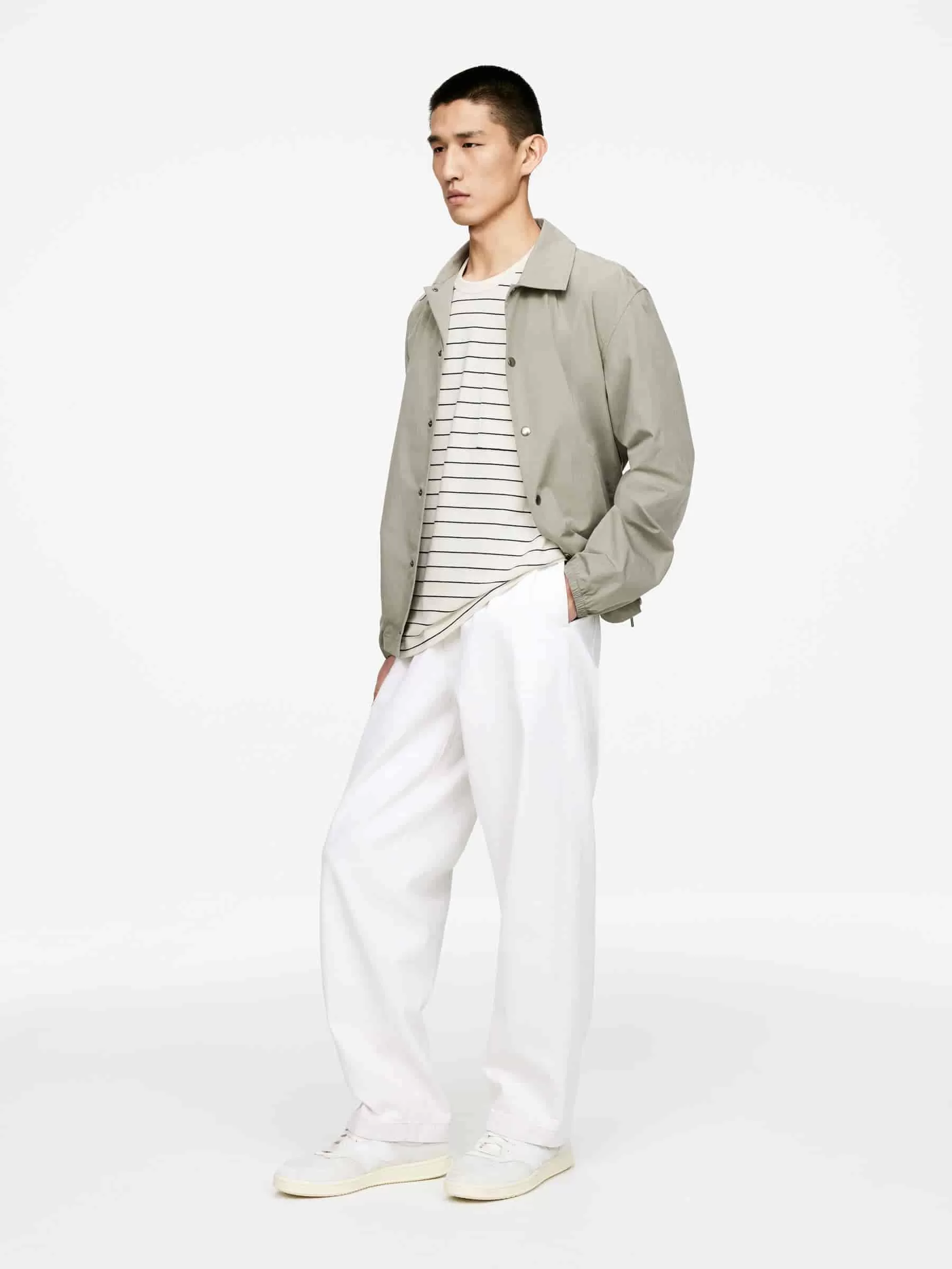 ARKE Herren T-Shirt aus Baumwollleinen Weiß/Dunkelblau