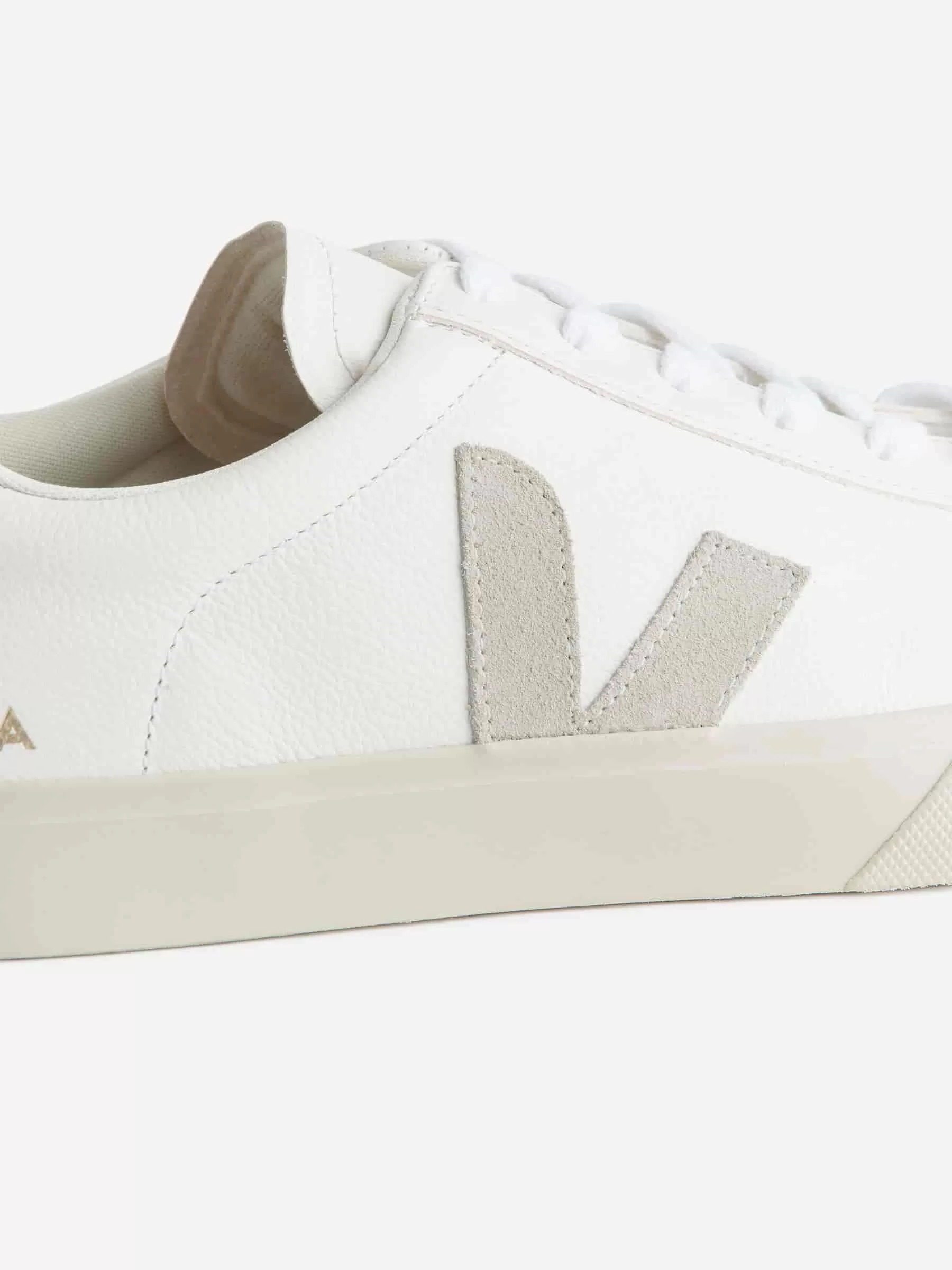Die Campo-Turnschuhe sind VEJAs beliebter Stil mit einem klaren, minimalistischen Design. Sie haben eine Low-Top-Silhouette und verfügen über ein Obermaterial aus hochwertigem Leder mit genarbter Textur und einem ikonischen V-Logo-Detail an der Seite.
