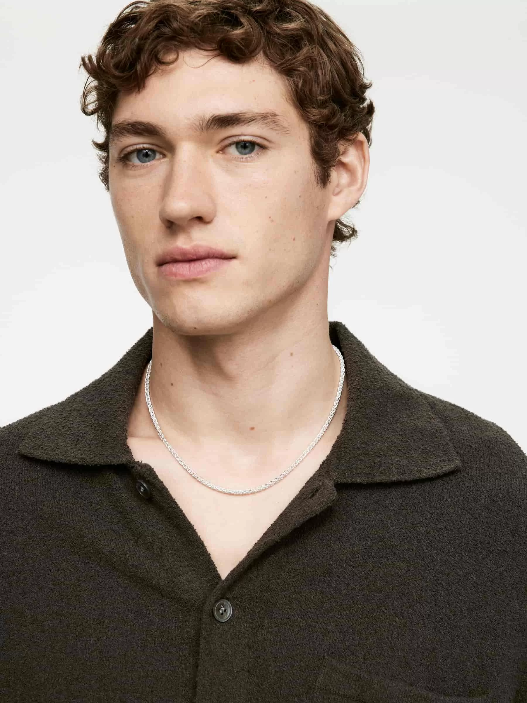 Schwere Weizenkette aus Sterlingsilber. Ein etwas kürzerer Stil, der zum Ausschnitt eines lässigen T-Shirts passt. Länge 47 cm.