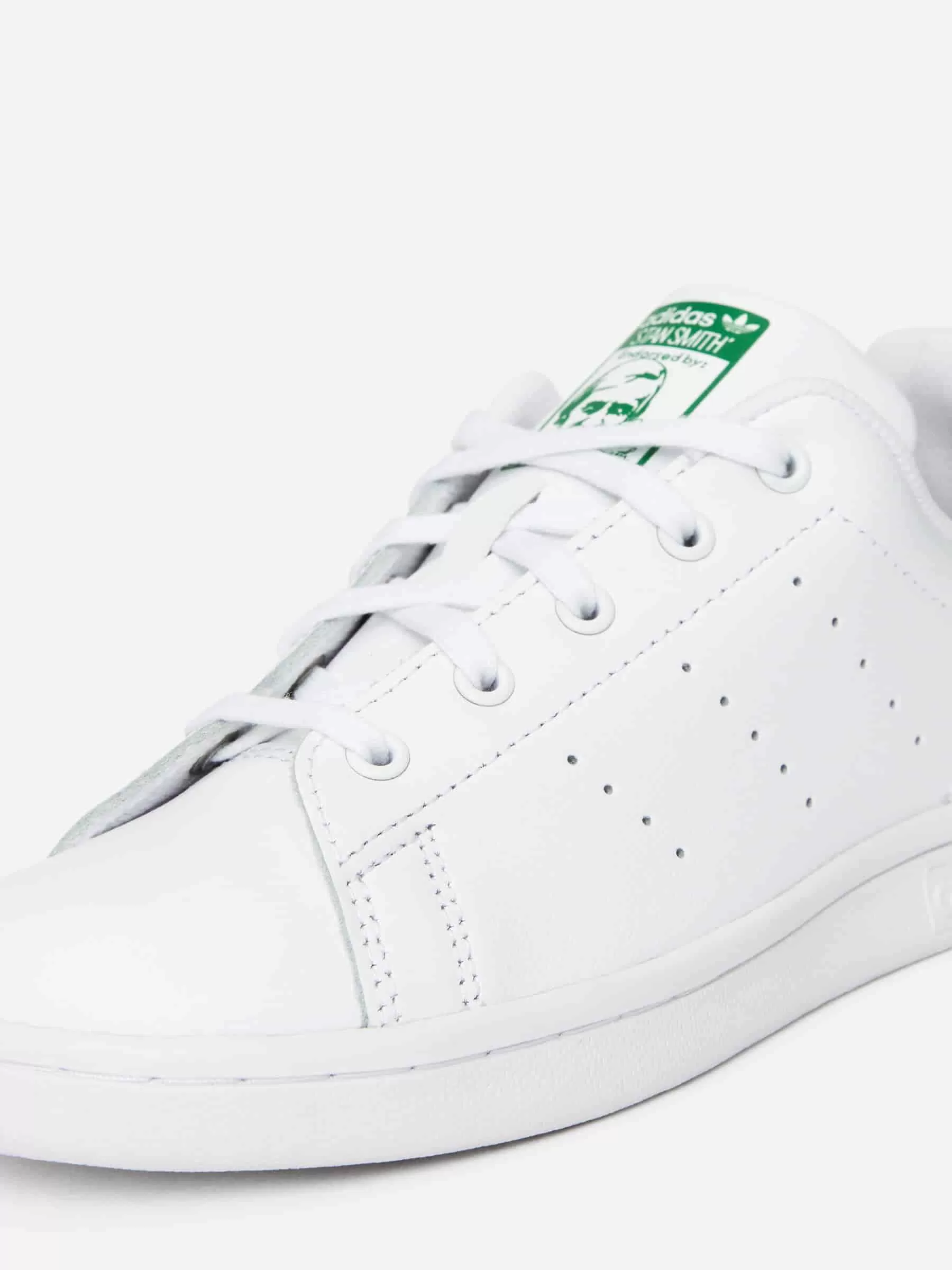 Kinderversion des ikonischen, minimalistischen Tennisschuhs Stan Smith, benannt nach dem amerikanischen Tennisspieler. Ein Schnürschuh aus weichem und geschmeidigem Vollnarbenleder auf einer farblich abgestimmten Gummi-Cupsohle. Logo auf dem Fersenaufnäher.