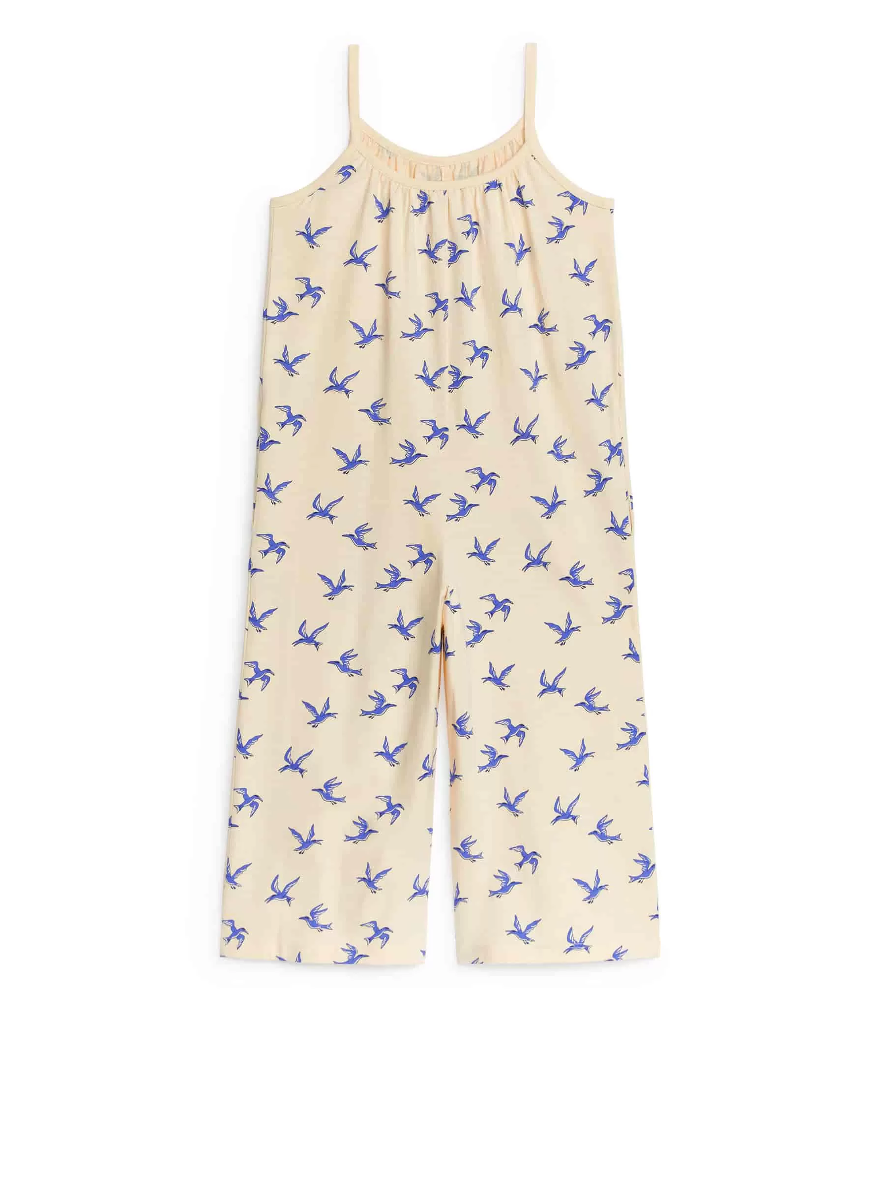 Ärmelloser Overall aus weichem Baumwolljersey. Dieser Pull-on-Stil zeichnet sich durch eine lockere Passform und durchgehend gerade Beine aus.