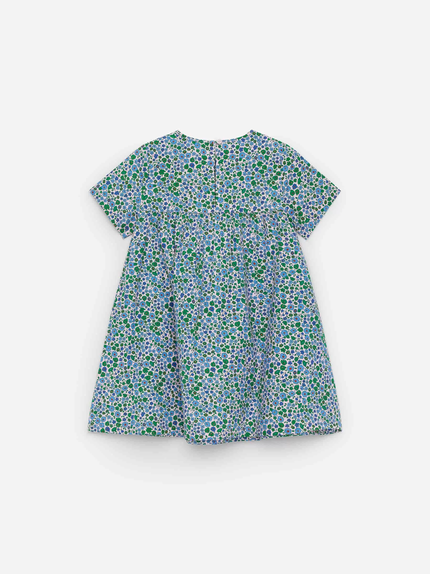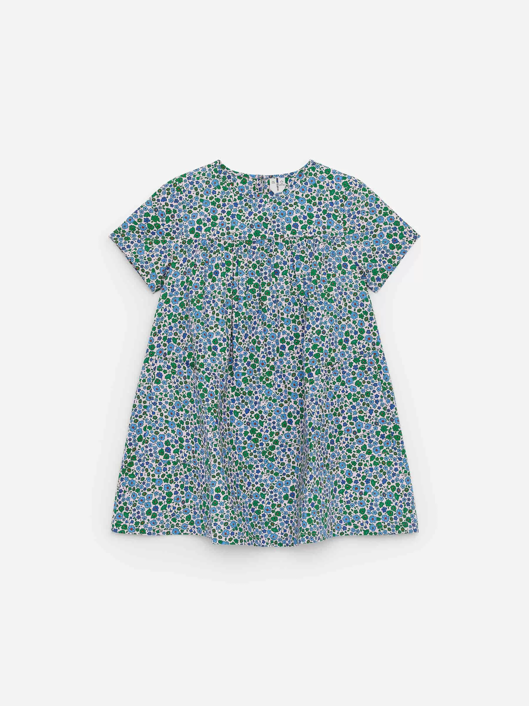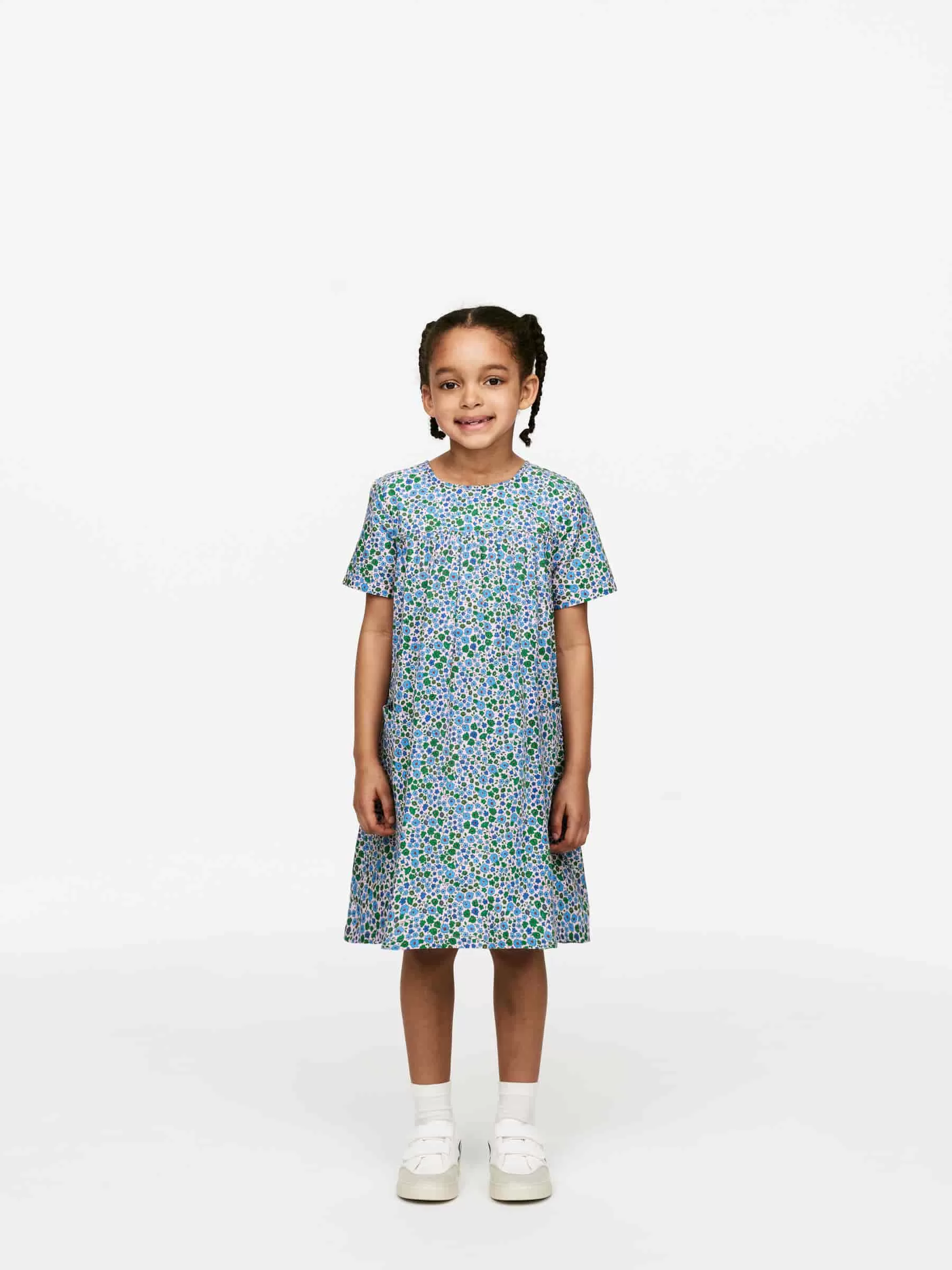 Dieses Sommerkleid ist aus einem weichen Popeline-Stoff aus Baumwolle gefertigt. Die kurzen Ärmel und die voluminöse Silhouette verleihen diesem Kleid ein luftiges Tragegefühl. Es hat oben sowohl vorne als auch hinten eine Passe und darunter Falten. Detailliert mit zwei aufgesetzten Taschen vorne und einer Schlüssellochöffnung mit Knopfverschluss hinten am Hals. Ungefüttert.
