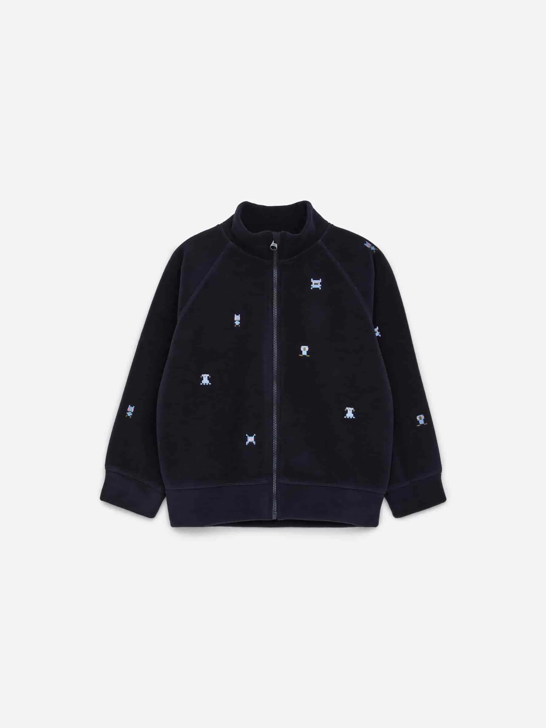 ARKE Kinder Bestickte Fleecejacke Dunkelblau