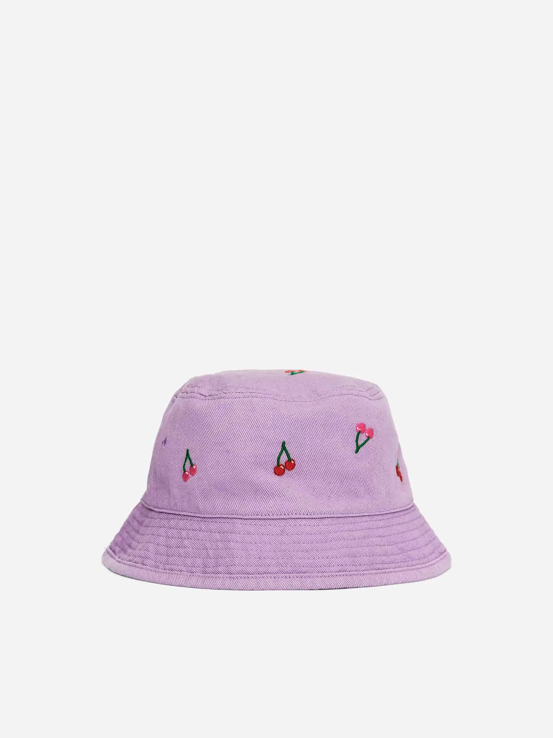ARKE Kinder Bestickter Fischerhut Flieder/Rot
