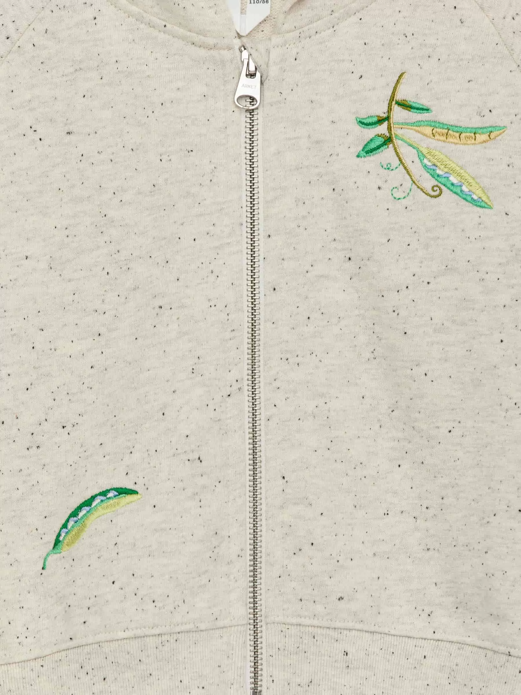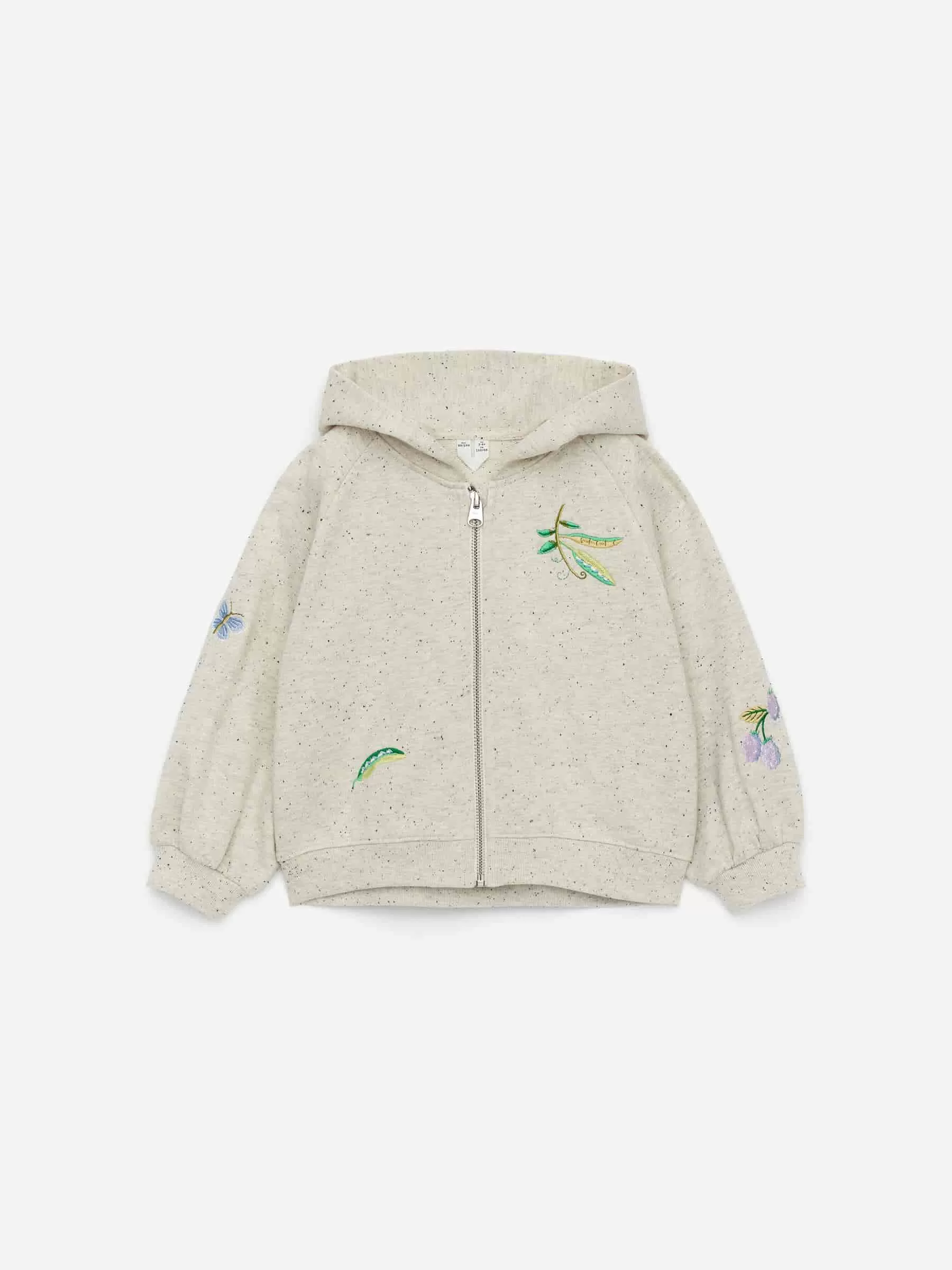 ARKE Kinder Bestickter Kapuzenpullover mit Reißverschluss Graue Melange