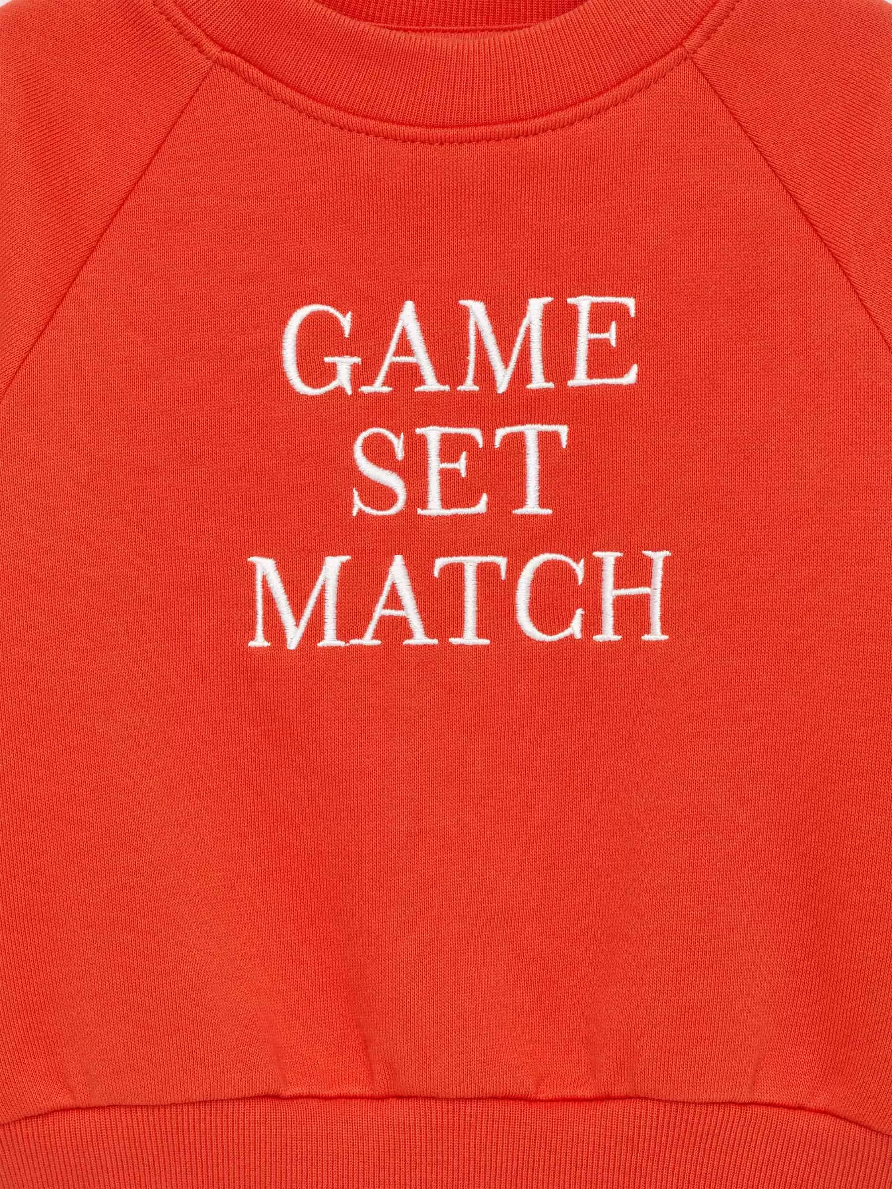 Sweatshirt aus Baumwollfrottee mit gebürsteter Innenseite. Gestickte Details und Druckknopf auf einer Seite erleichtern das Anziehen. Entspannte Passform.