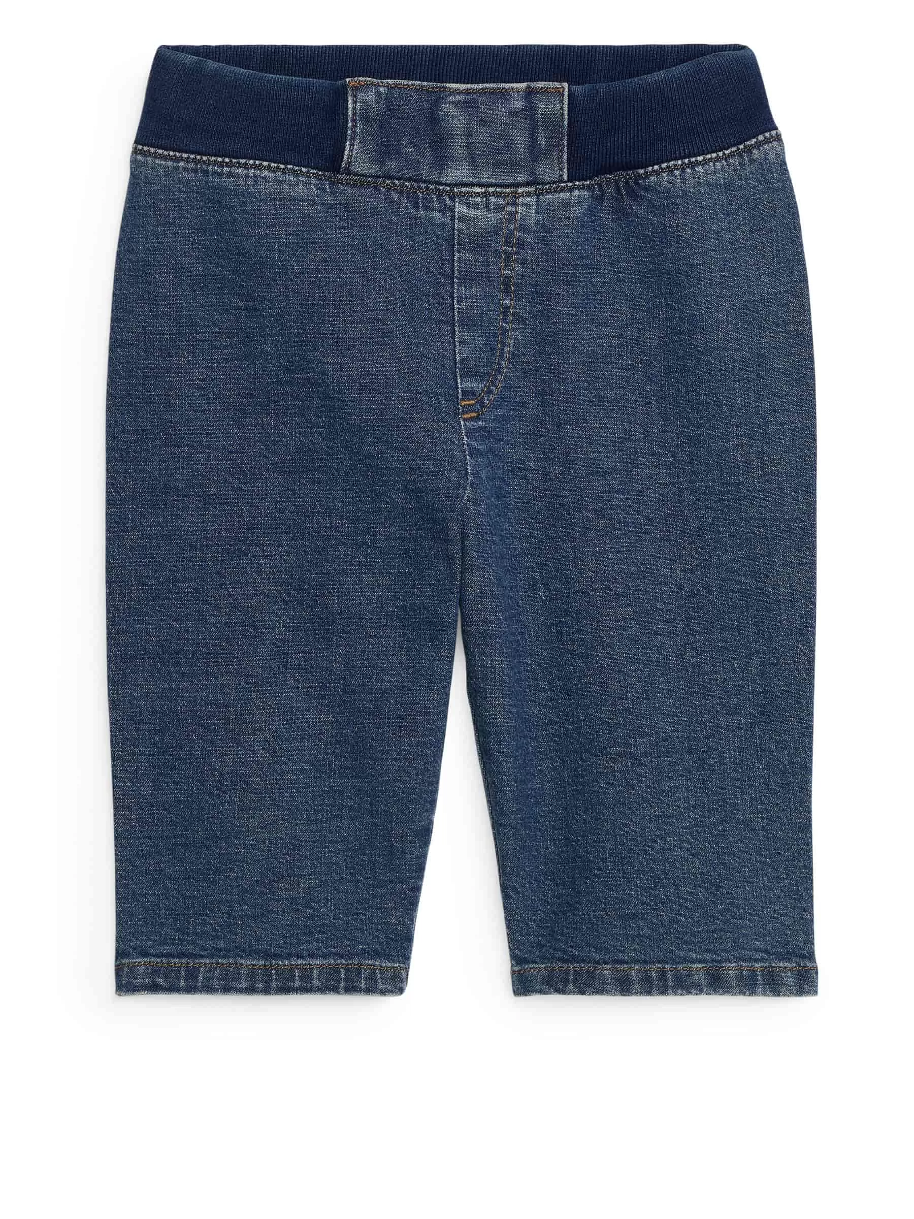 Stretchige Jeanshose aus einer Baumwollmischung. Lockere Passform mit weiten Beinen. Gerippter Gummizug am Bund und künstlicher Hosenschlitz. Zwei Gesäßtaschen.