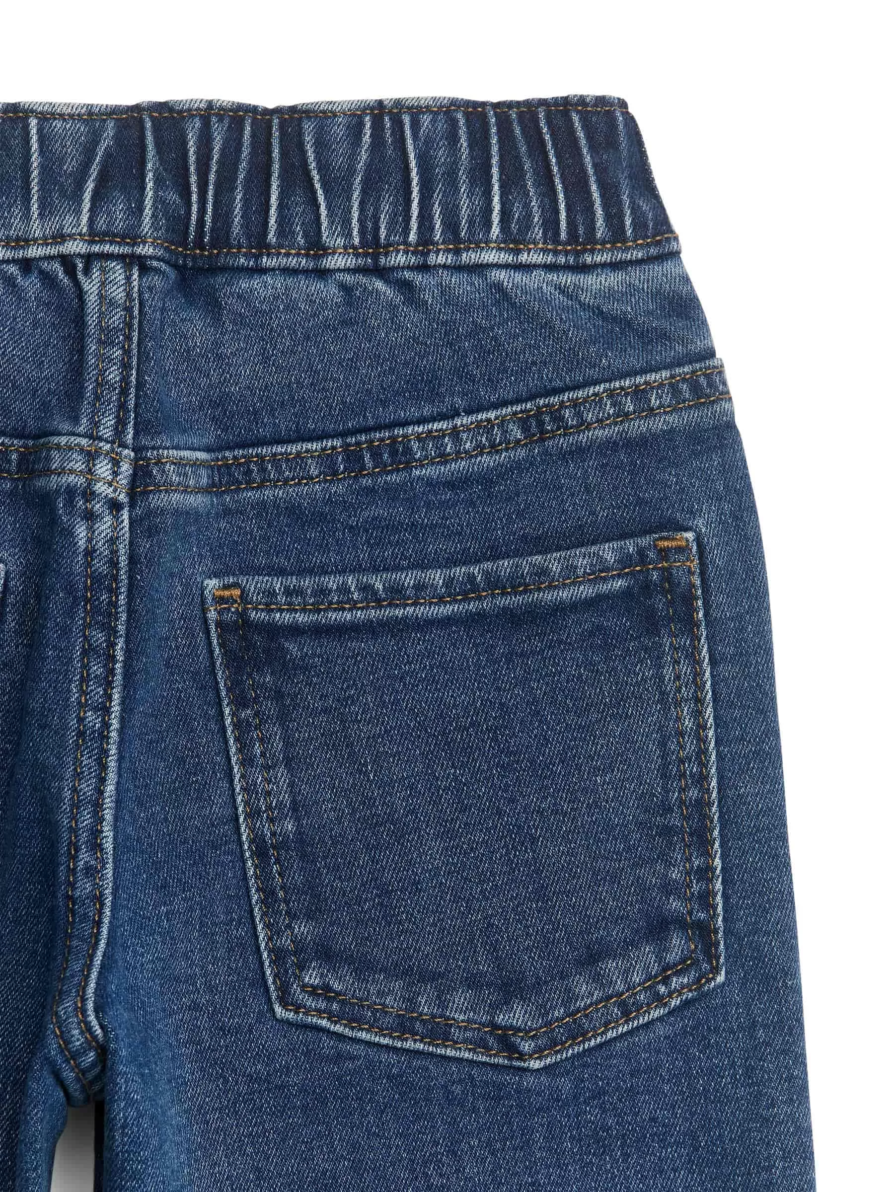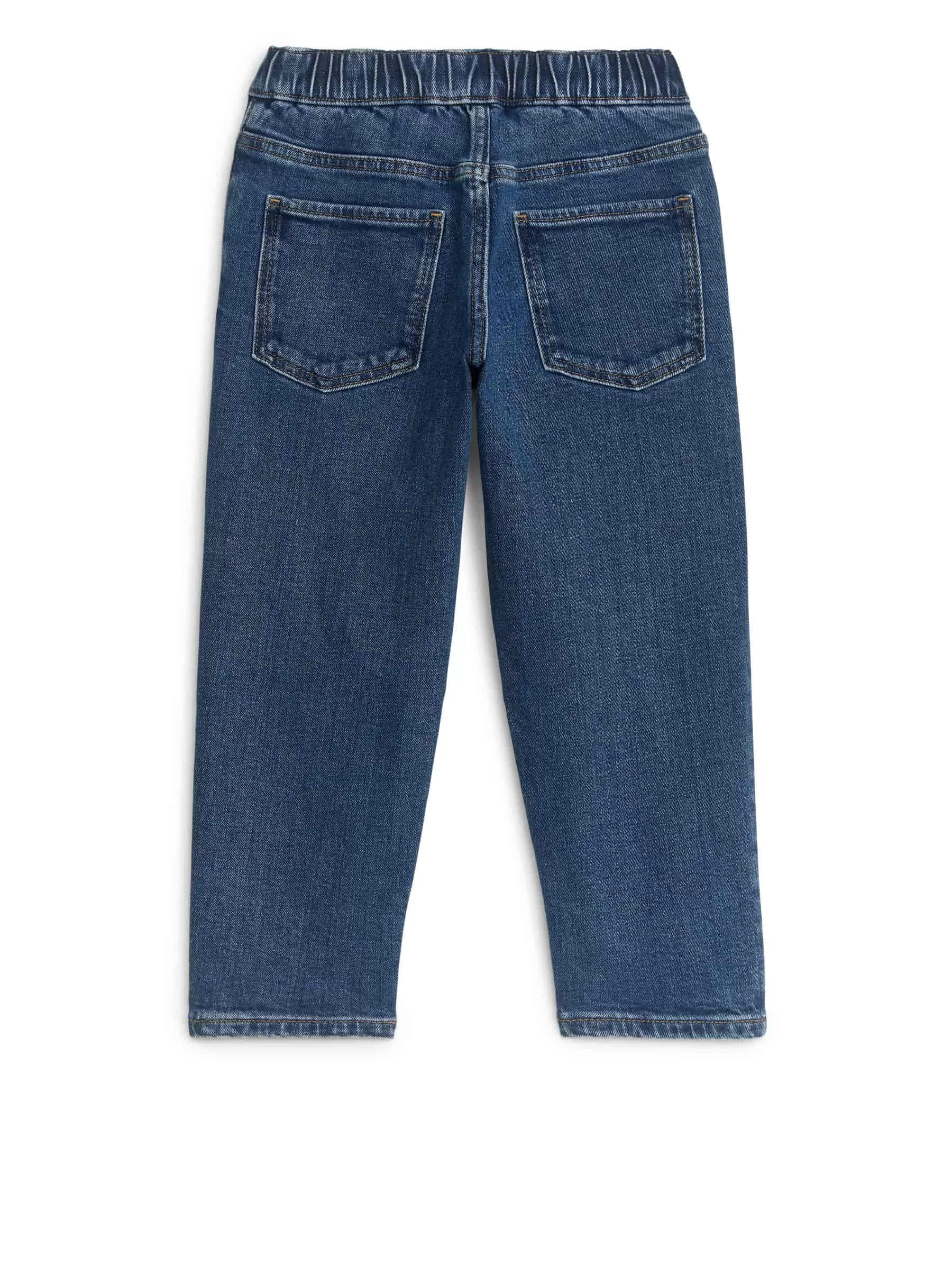 Pull-on-Jeans in weiter Passform mit geradem Bein. Elastischer Bund, Reißverschluss und Taschen vorne und hinten.