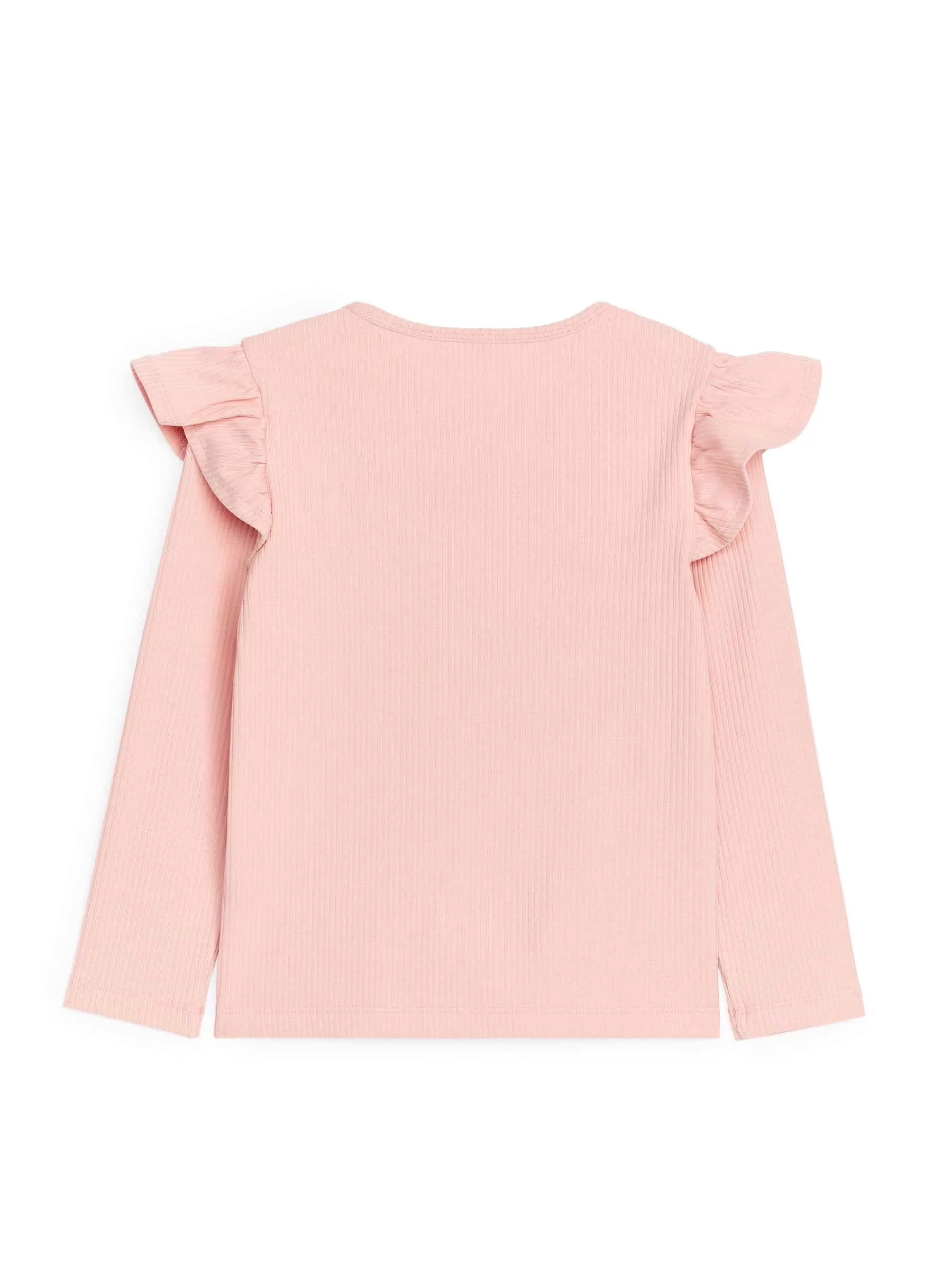 Langärmliges Oberteil aus dehnbarem Rippstrick-Jersey. Ein Slim-Fit-Stil mit Rüschendetails an den Schultern.