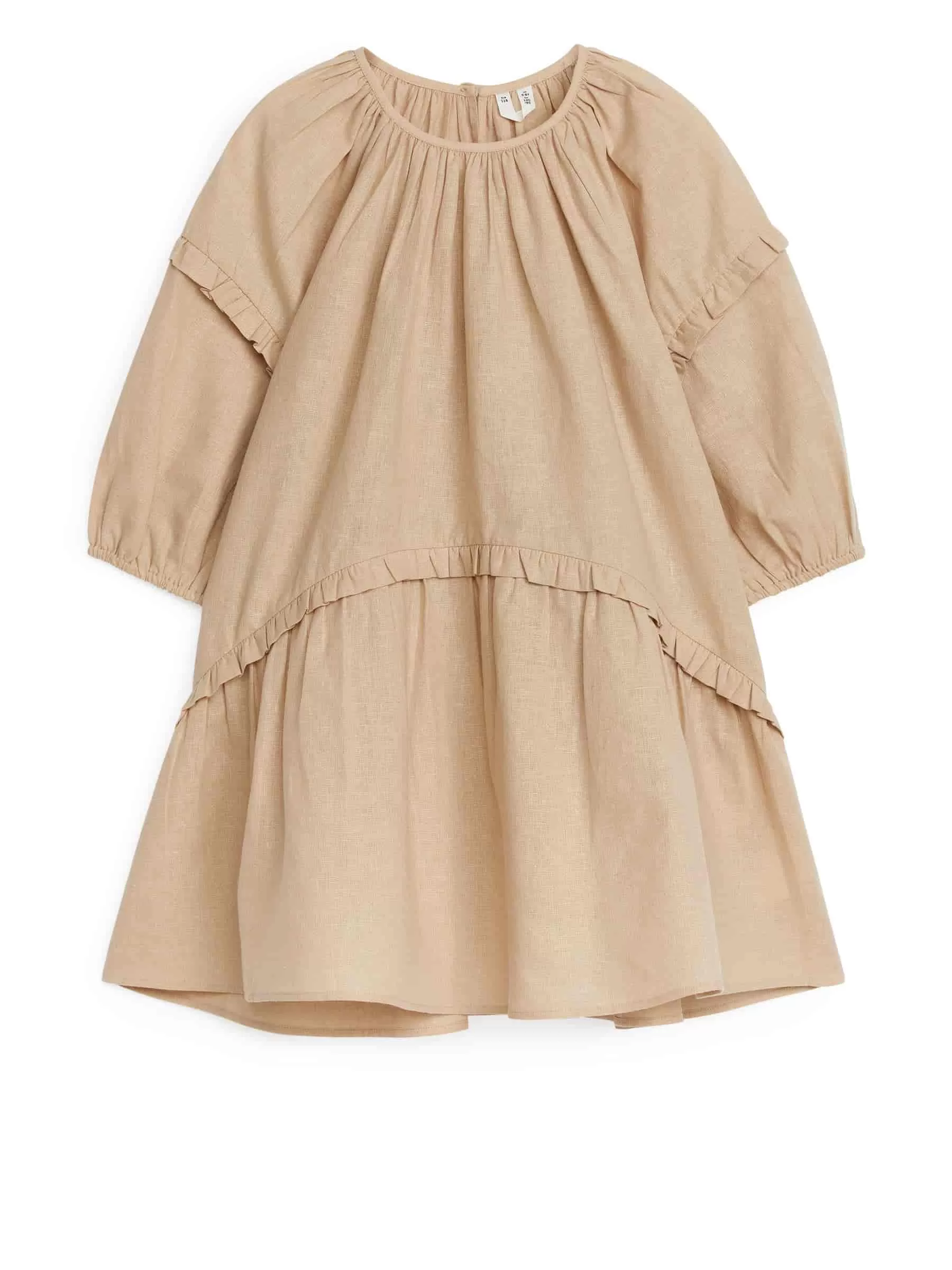 ARKE Kinder Kleid aus Leinenmischung mit Rüschen Beige