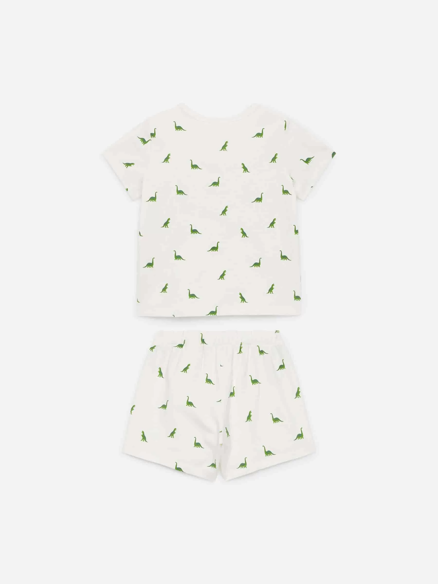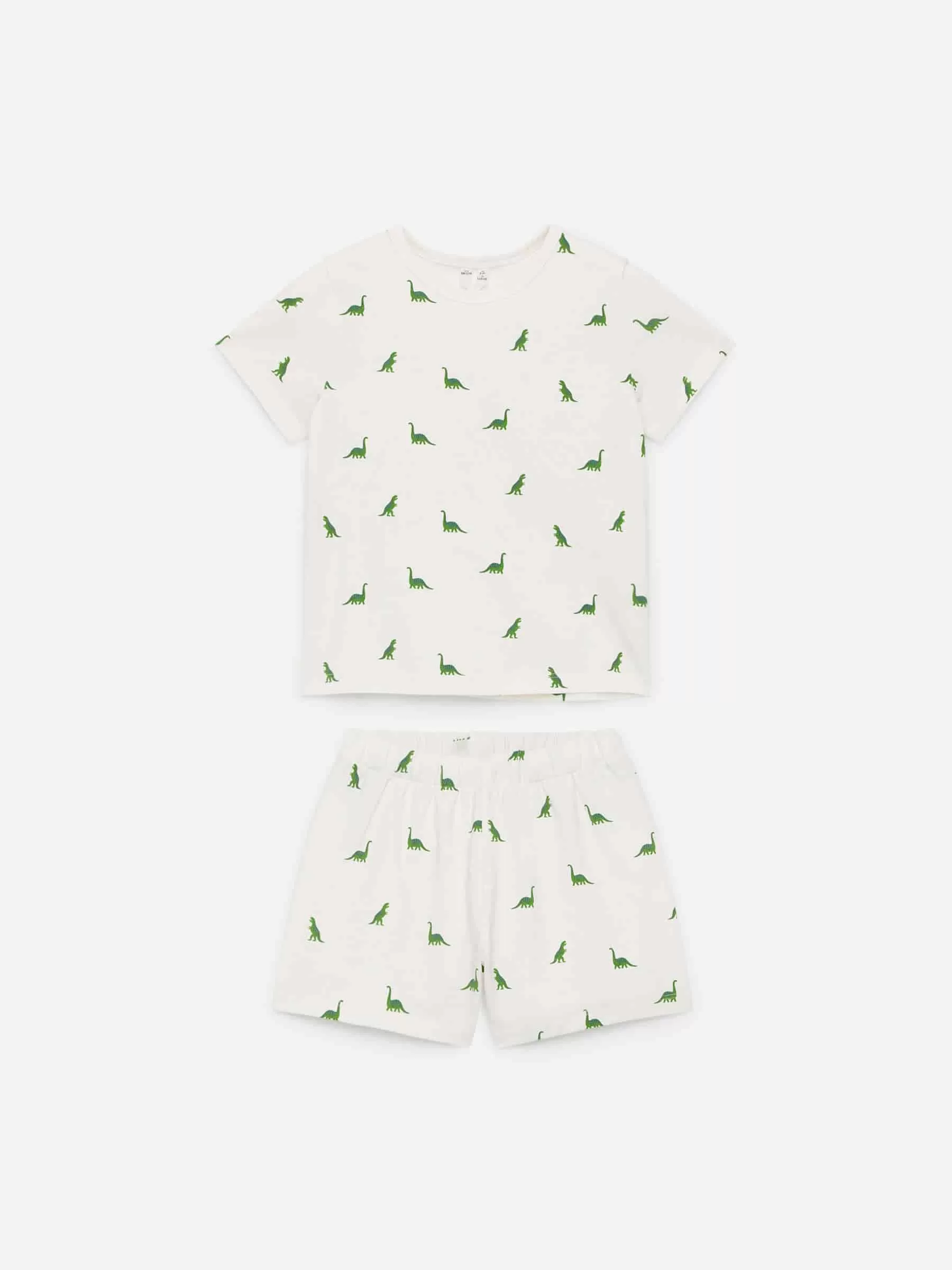 Weiches Pyjama-Set aus Baumwolljersey mit zarter Rippstruktur. Das Set besteht aus einem T-Shirt mit normaler Passform und einer Shorts mit elastischem Bund.