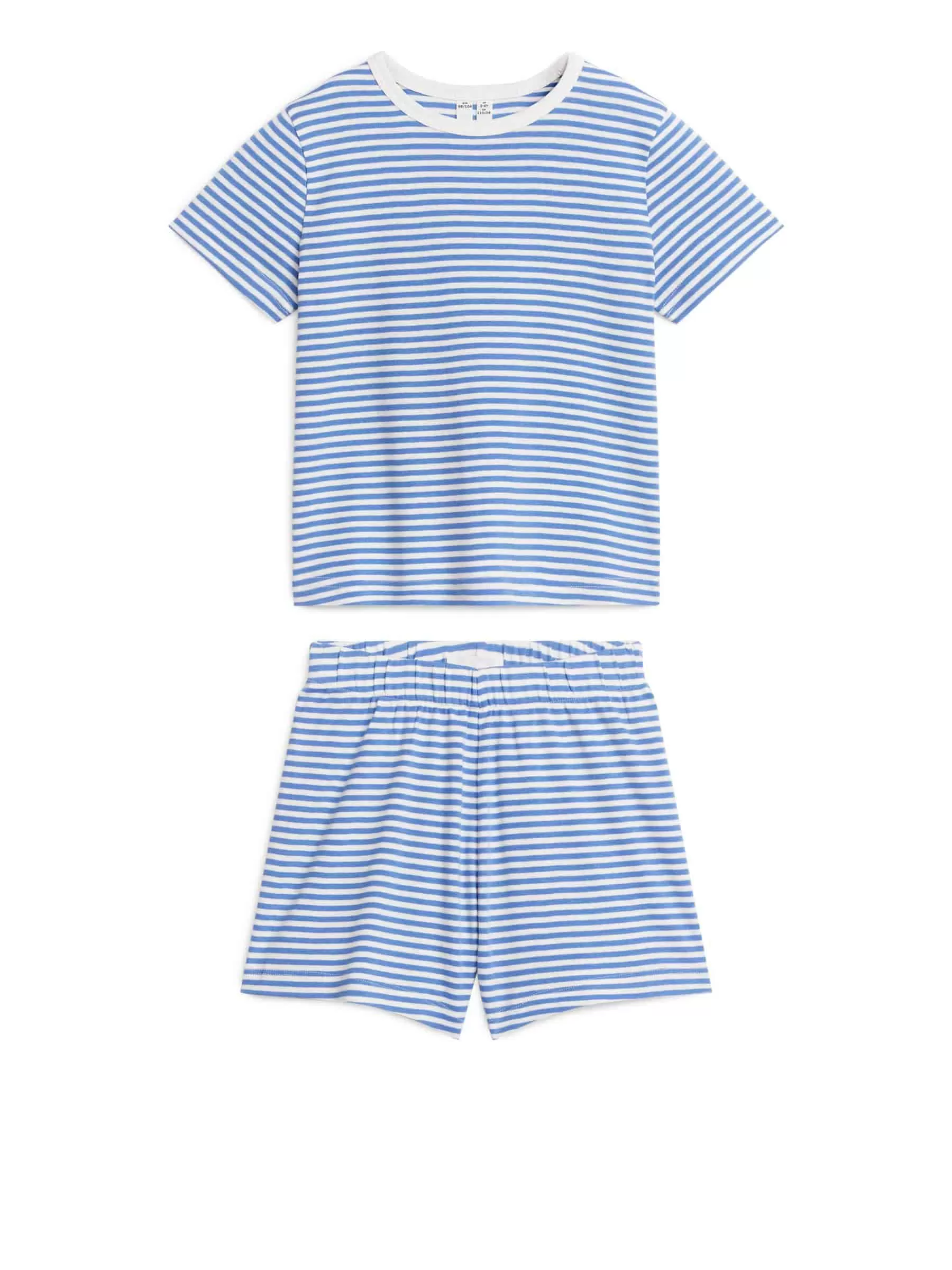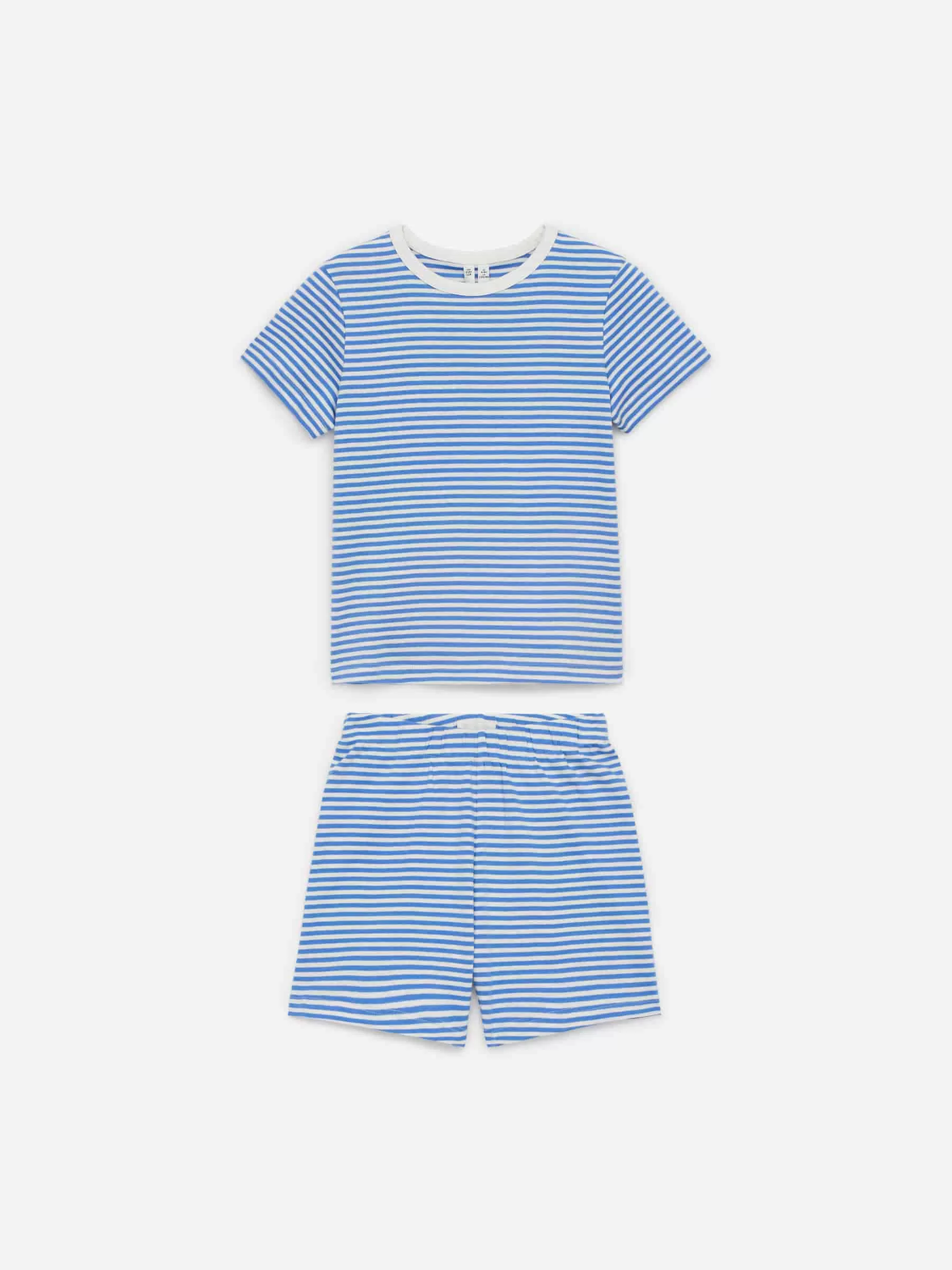 ARKE Kinder Kurzes Jersey-Pyjama-Set Blau/Weiß