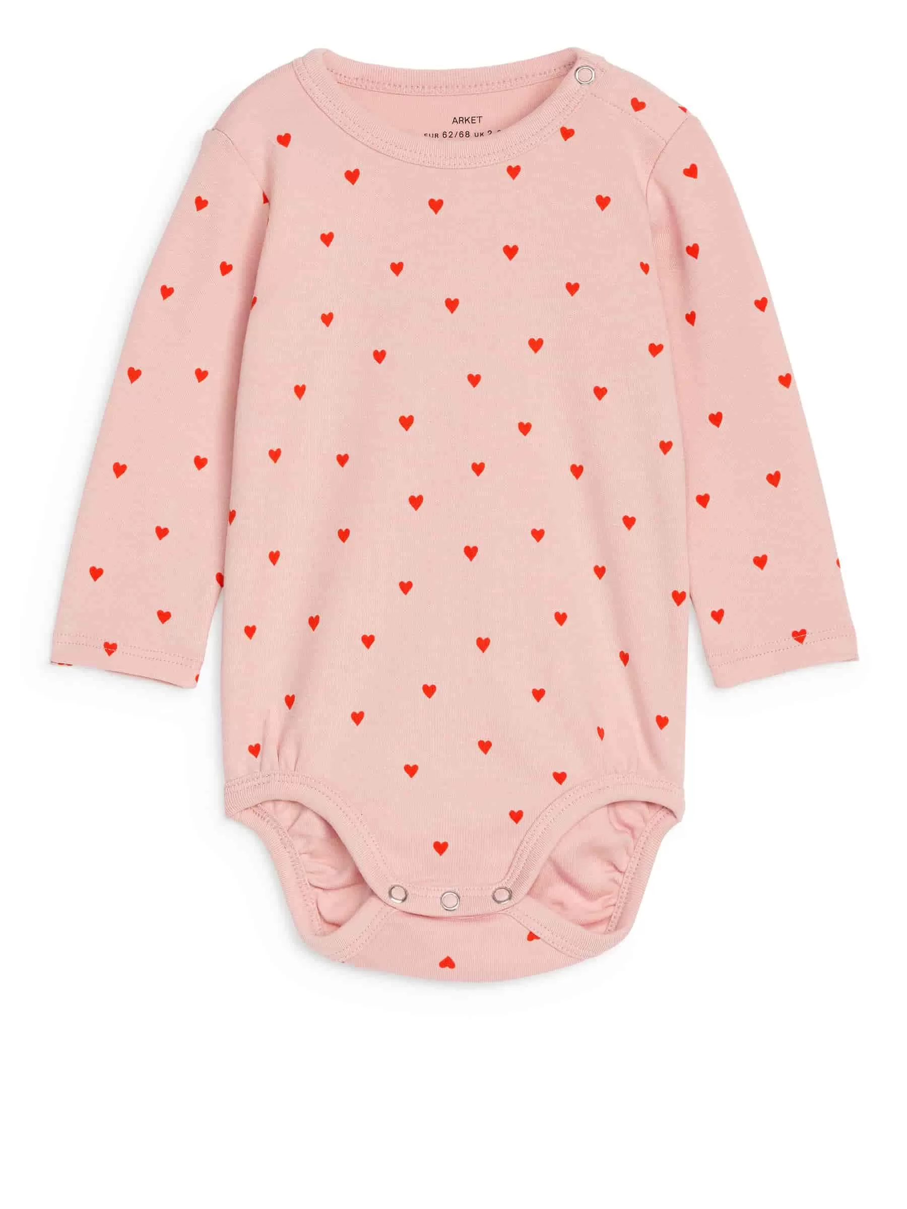 Langärmliger Body aus weichem Baumwolljersey. Druckknöpfe an der Schulter und im Schritt erleichtern das An- und Ausziehen.