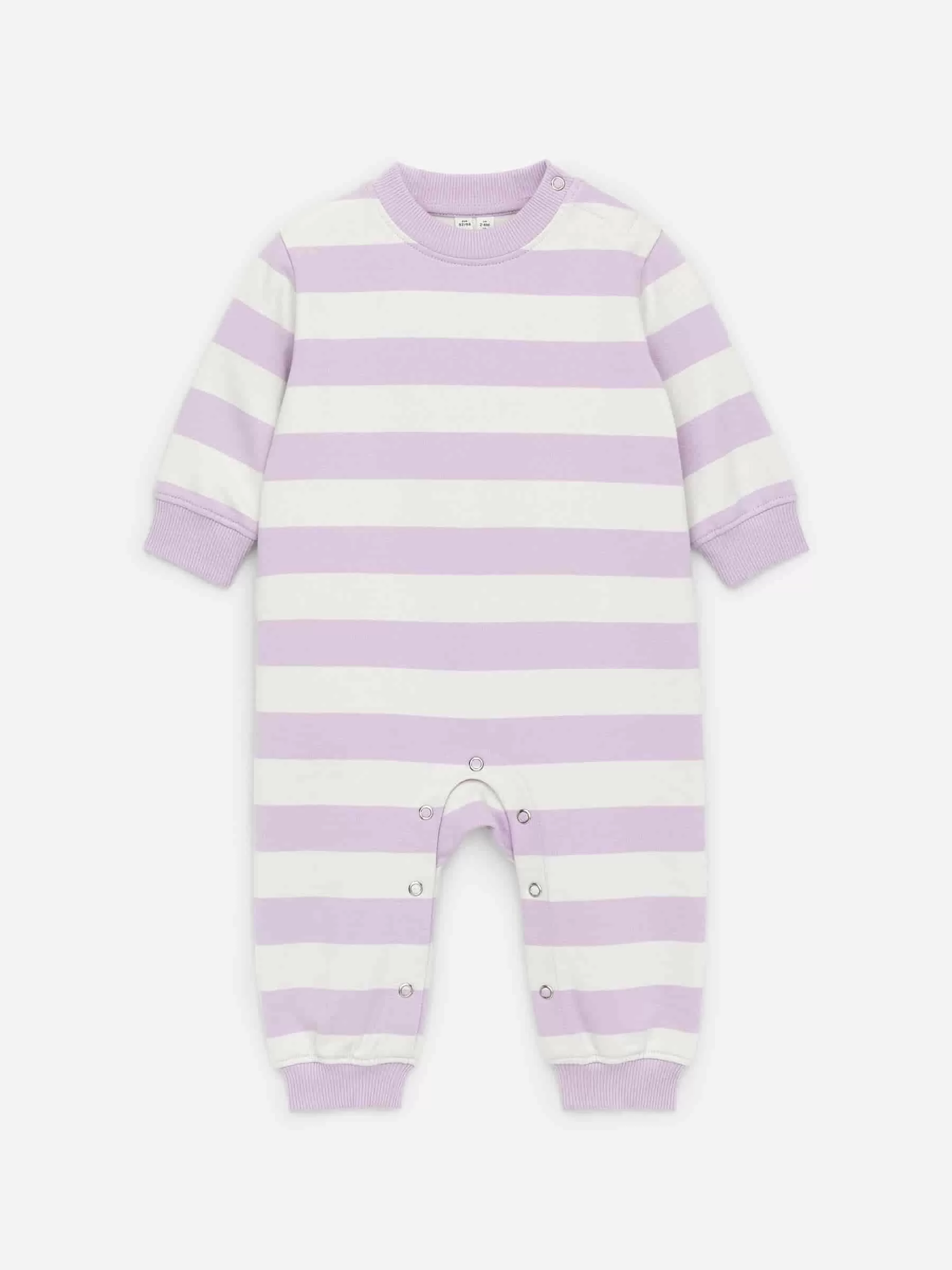 Overall aus weichem French-Terry-Stoff aus Baumwolle. Im regulären Schnitt geschnitten und mit gerippten Abschlüssen versehen. Druckknöpfe im Schritt und an der Schulter erleichtern das Anziehen.