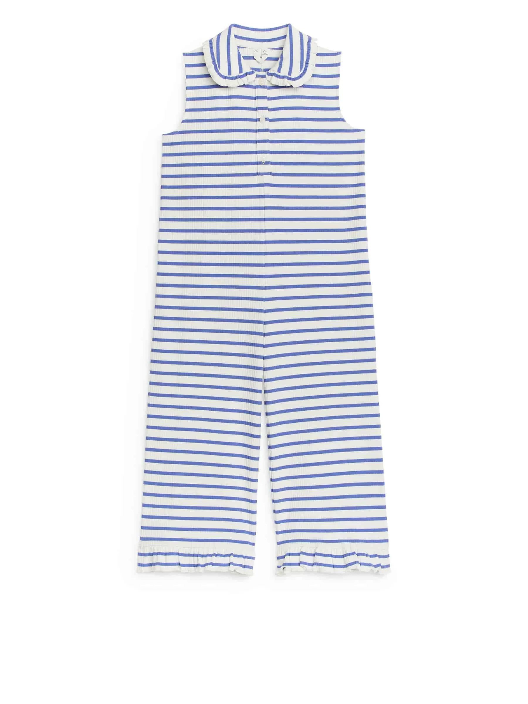 ARKE Kinder Overall mit Rüschenkragen Blau/Weiß