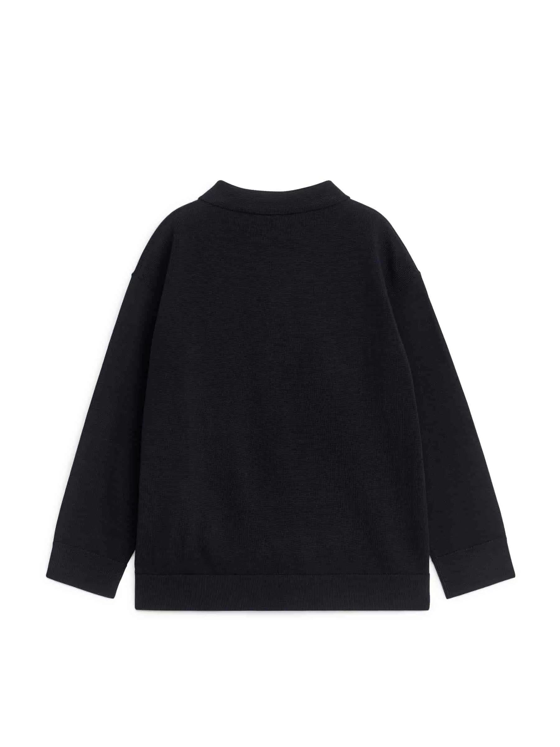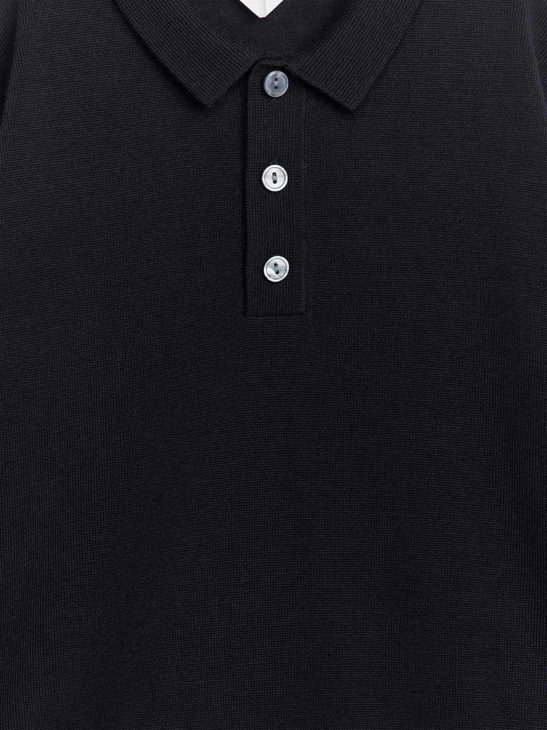 Strickpolopullover aus Wolle. Mit klassischem Kragen und Knopfleiste mit drei Knöpfen. Dieser Pullover enthält 100 % RWS-Wolle, zertifiziert durch die Kontrollunion 862581. Produkte, die nach dem Responsible Wool Standard (RWS) zertifiziert sind, enthalten Wollfasern von Farmen, die unabhängig nach Tierschutz- und Landbewirtschaftungsanforderungen zertifiziert sind.
