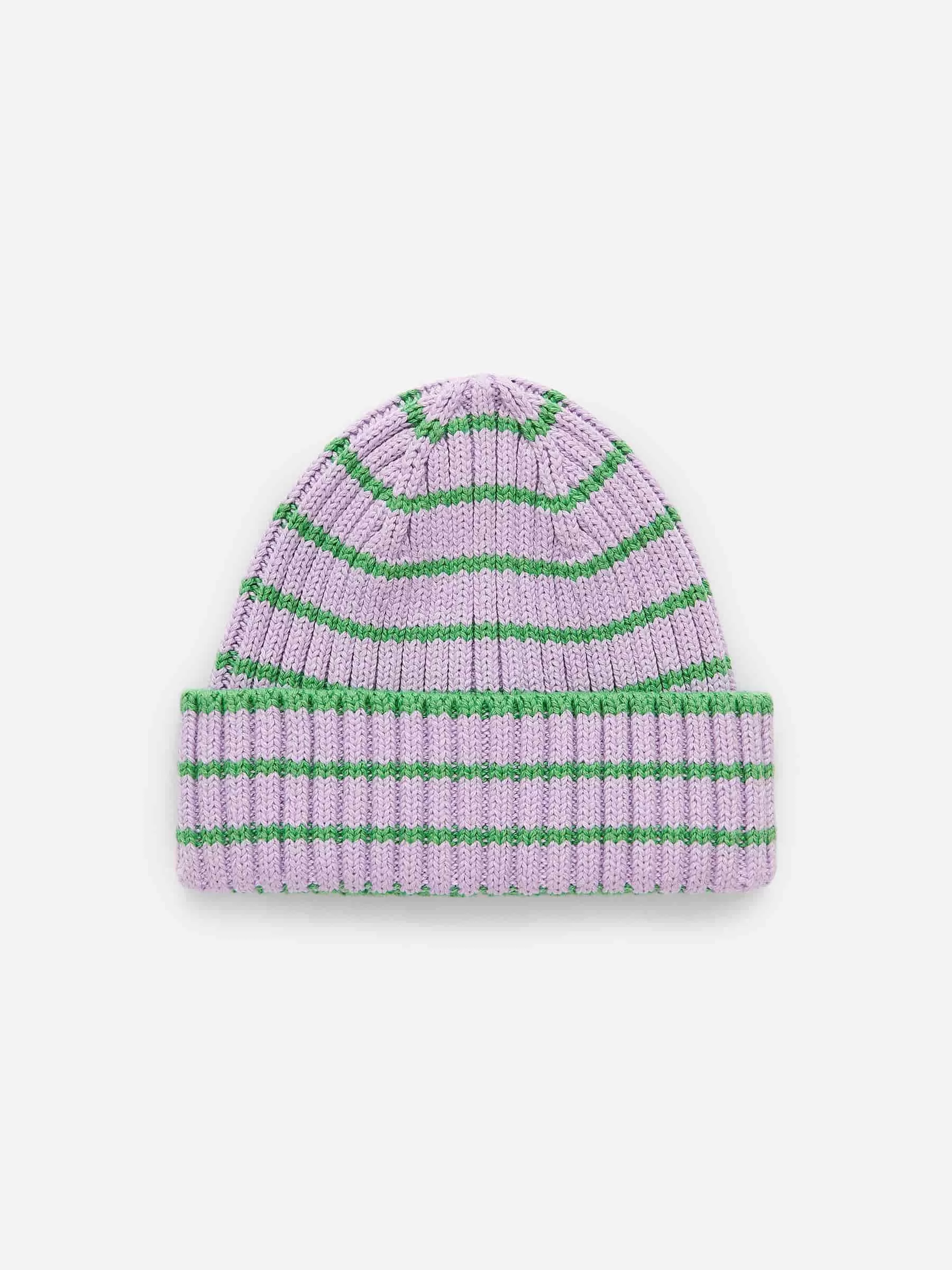 ARKE Kinder Rippstrick-Babymütze Flieder/Grün