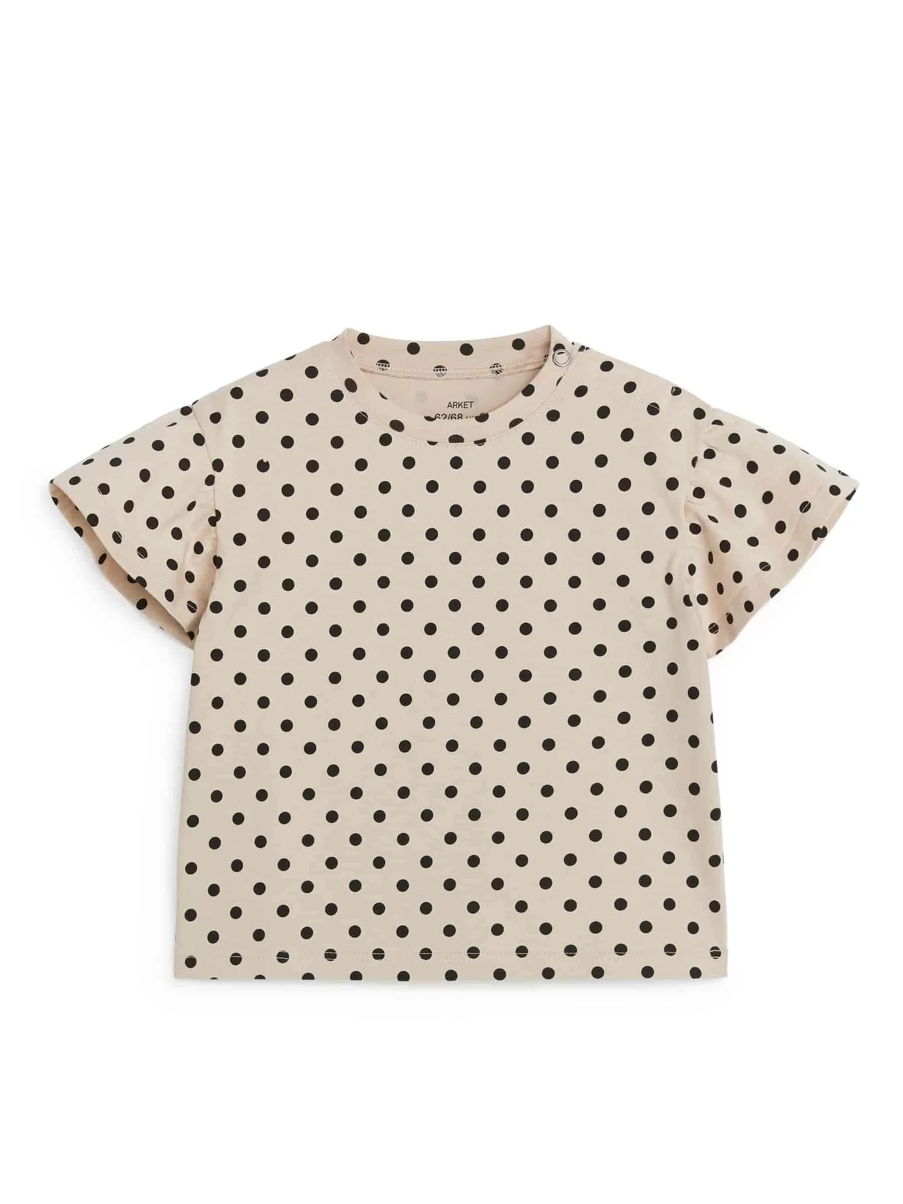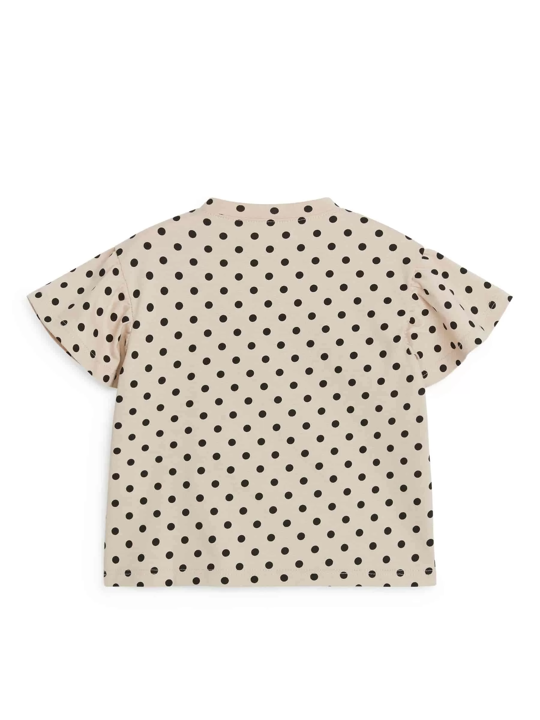 T-Shirt mit kurzen Rüschenärmeln. Es hat eine normale Passform mit Rundhalsausschnitt und leicht überschnittenen Schultern.