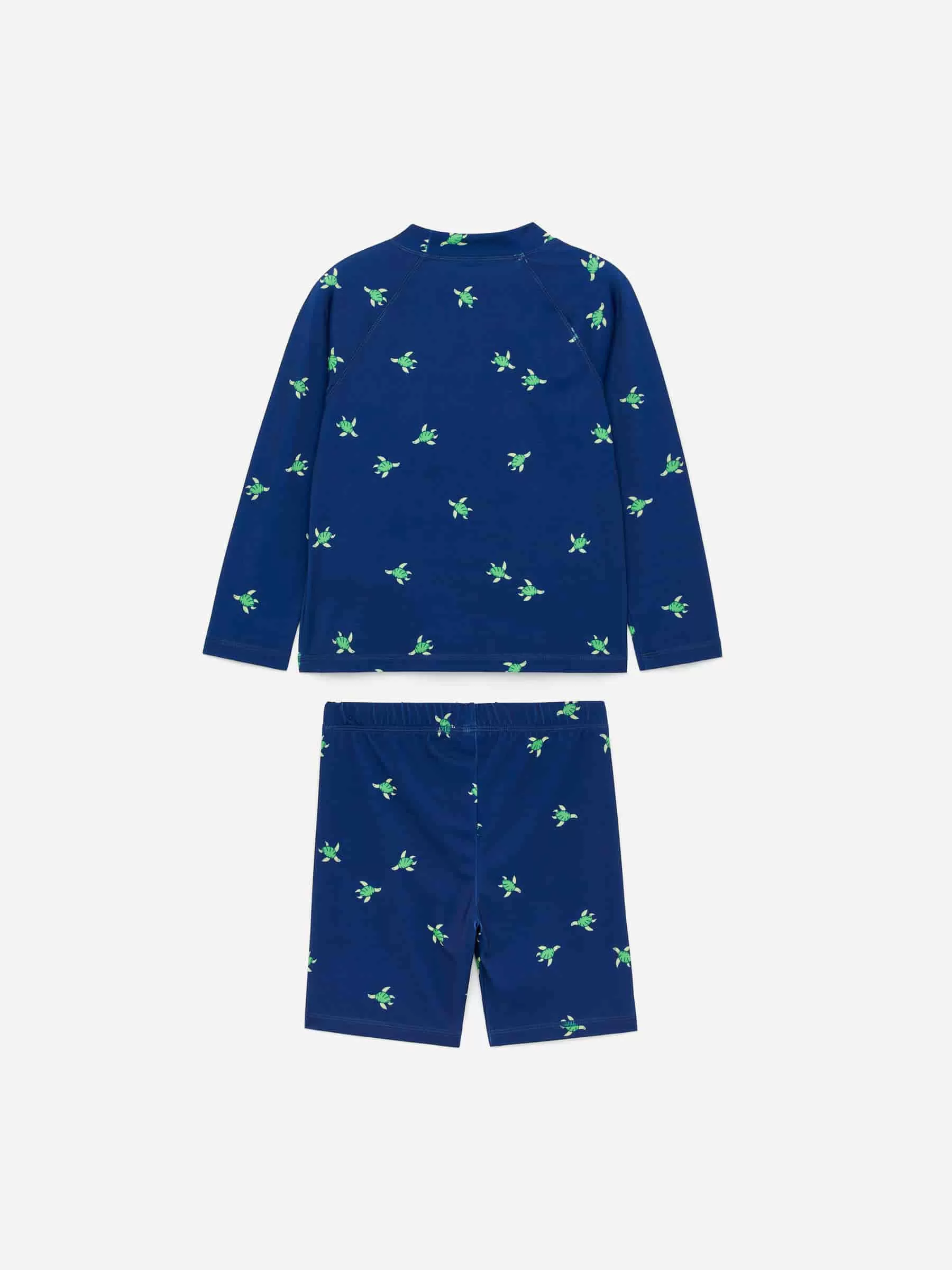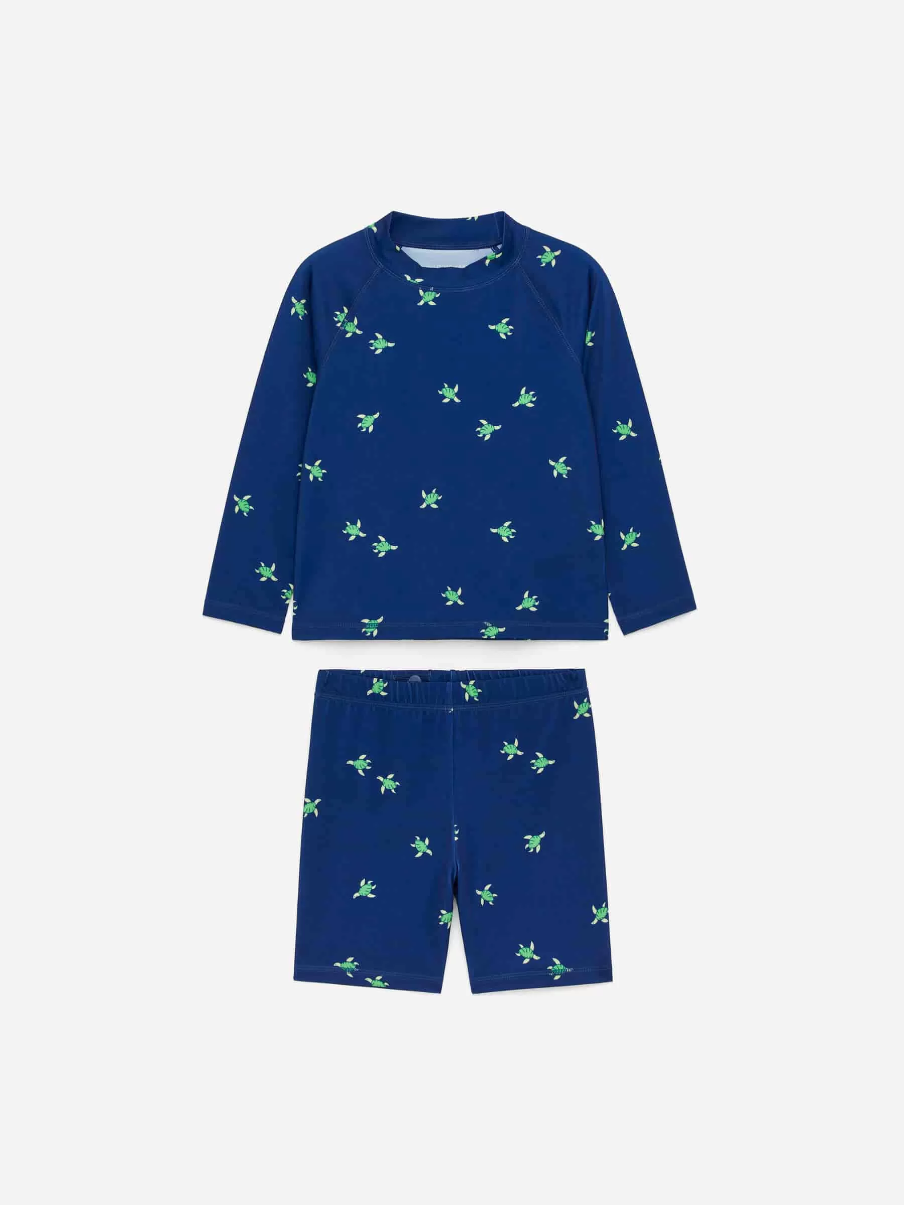 Badeset mit UV-Schutz UPF50+, mit einem langärmeligen T-Shirt mit Stehkragen und knielangen, vollständig gefütterten Unterteilen mit verstellbarer Taille. Normale Passform.