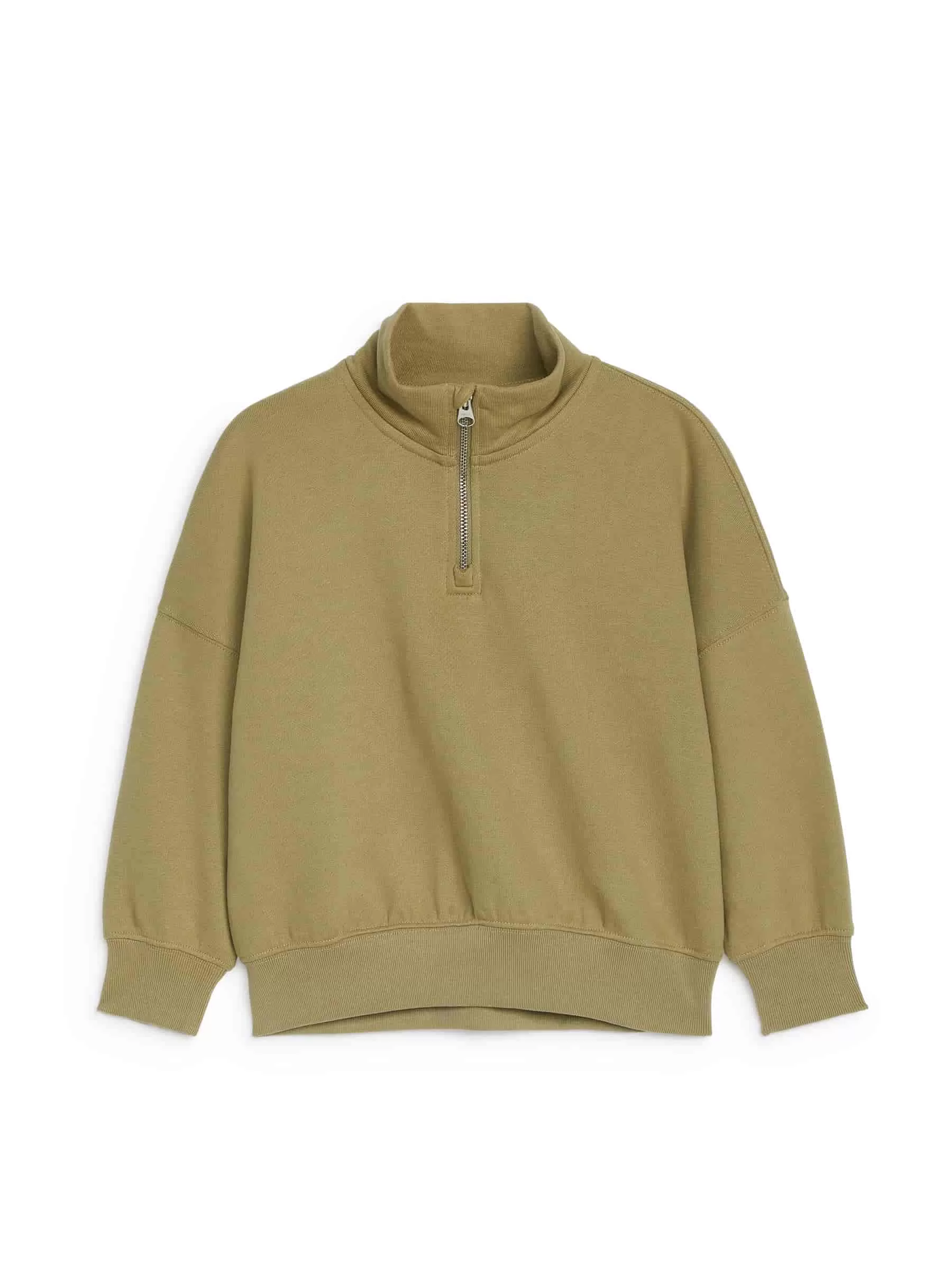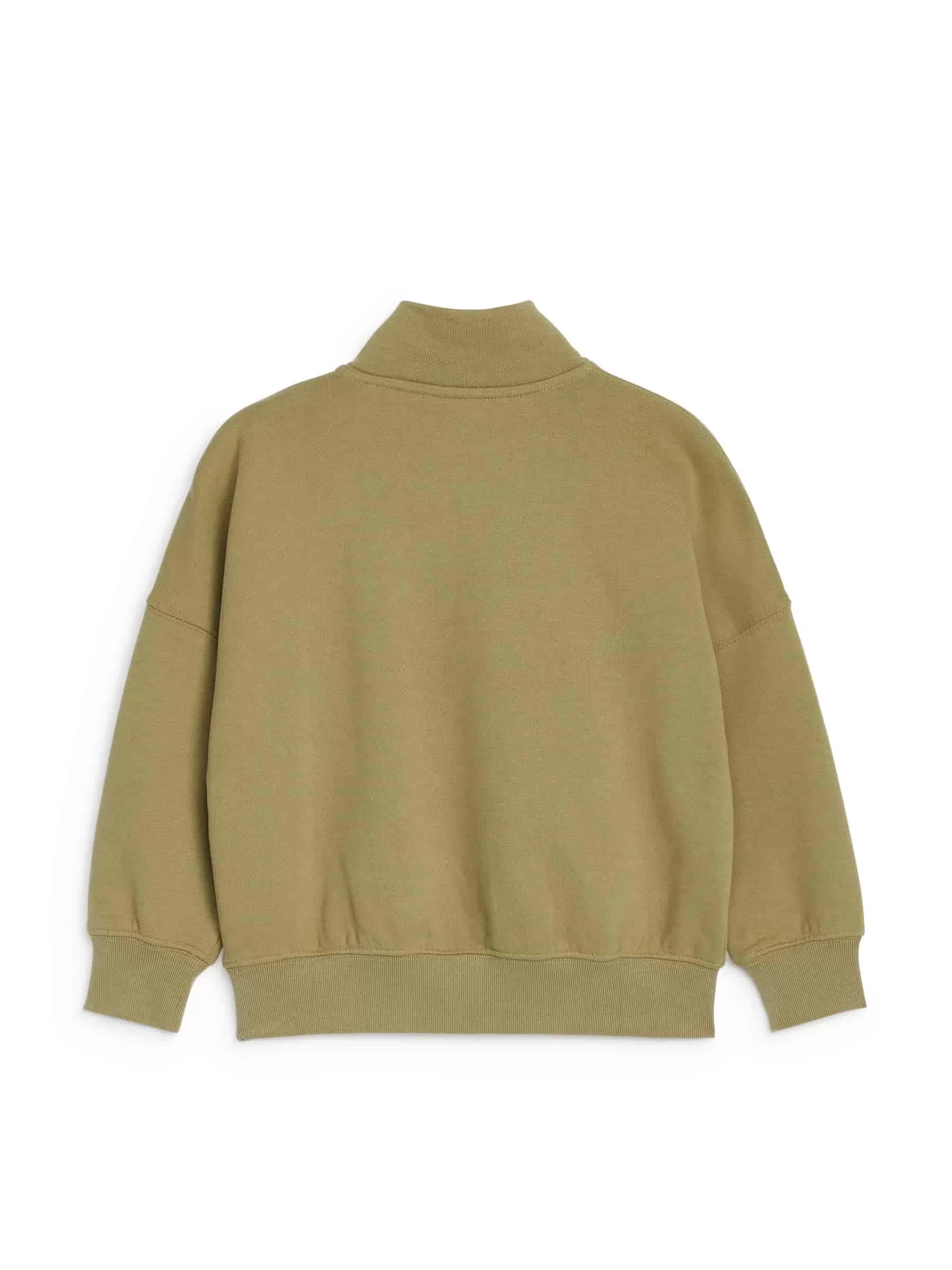 ARKE Kinder Sweatshirt mit halbem Reißverschluss Khakigrün