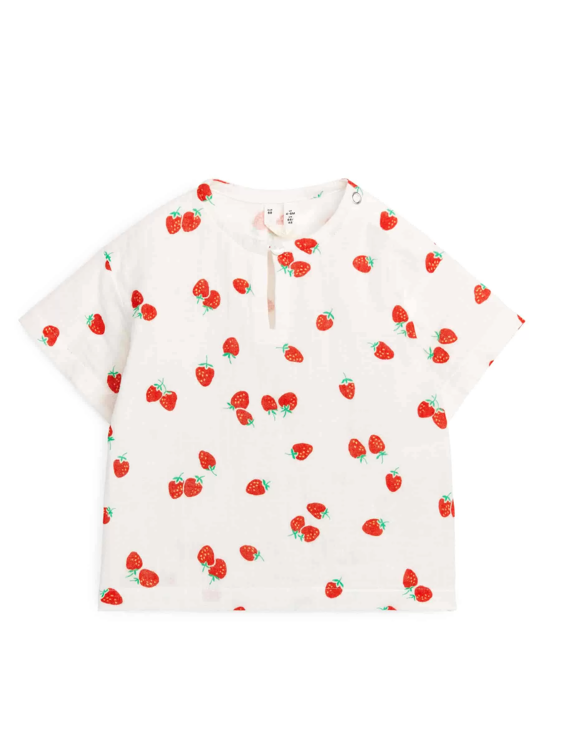 Bedrucktes Kurzarmoberteil aus weichem Baumwoll-Musselin-Gewebe. Öffnung mit Knopf vorne und Druckknöpfen an der Schulter zum einfachen Anziehen. Normale Passform.