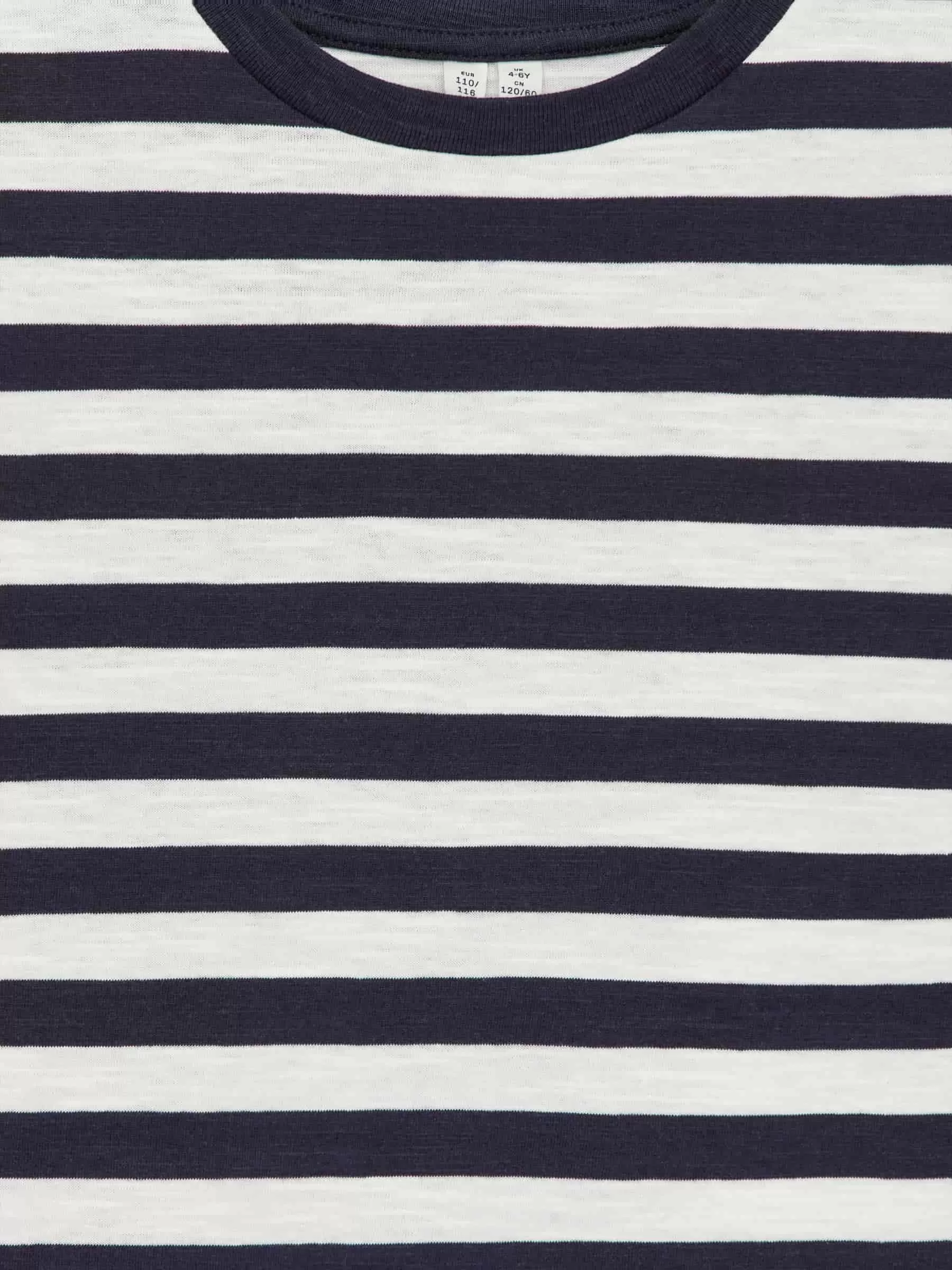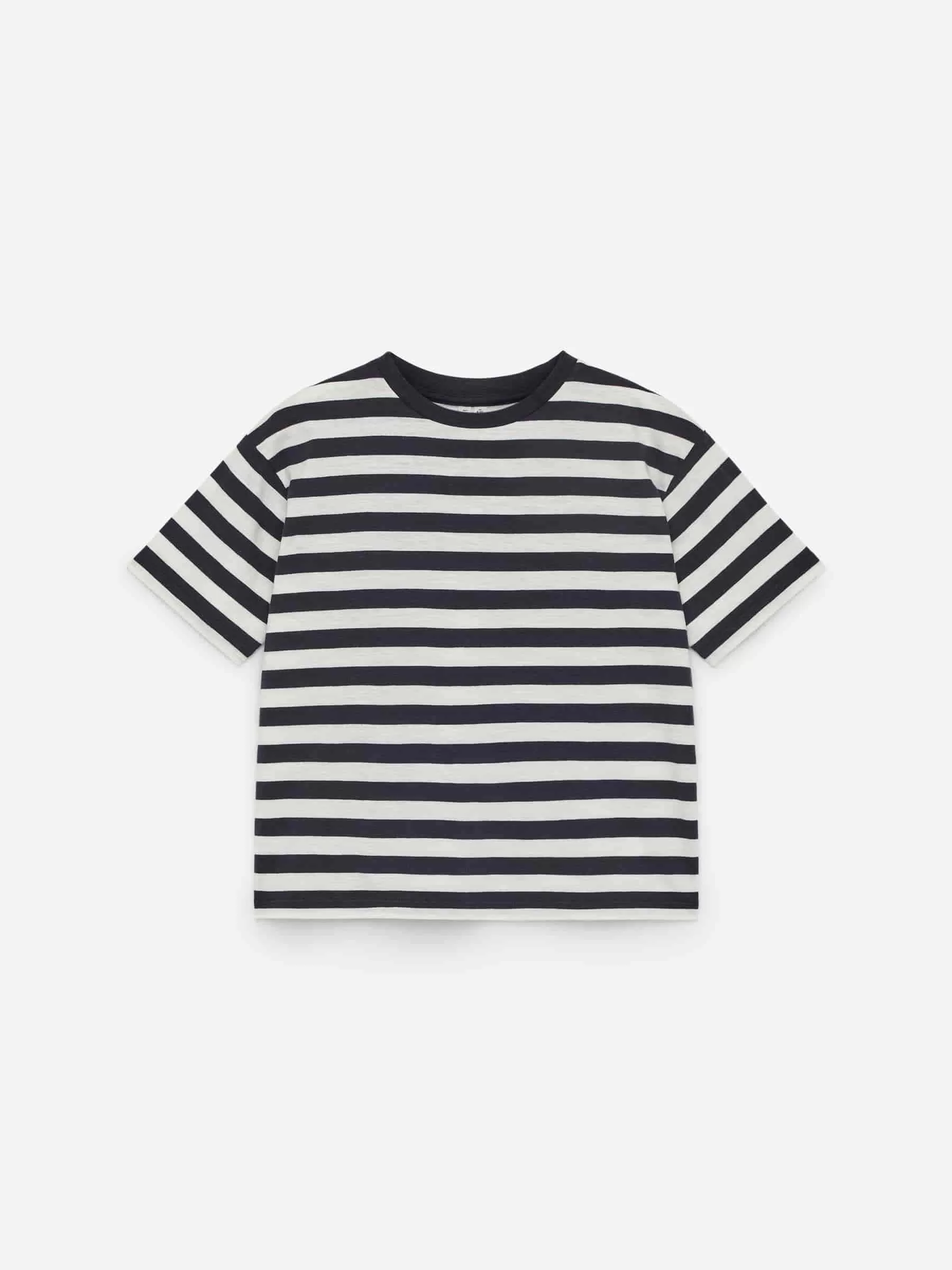 ARKE Kinder T-Shirt aus Flammstrick Dunkelblau/Gebrochenes Weiß