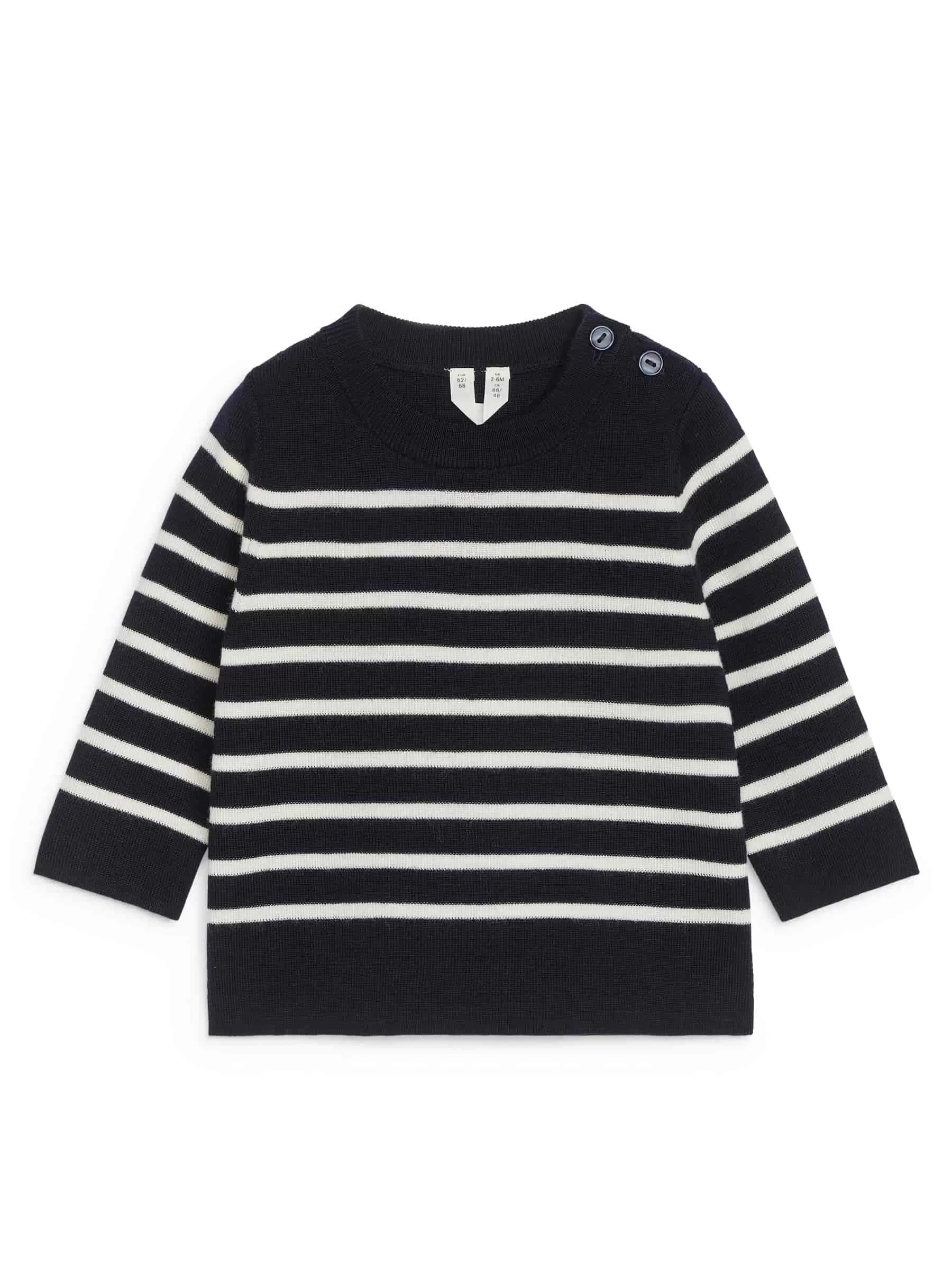 Pullover aus reiner Wolle gestrickt. Regular-Fit-Stil mit zwei Knöpfen an der Schulter. Gerippte Abschlüsse. Das Produkt enthält 100 % RWS-Wolle, zertifiziert durch die Kontrollunion 815571. Produkte, die nach dem Responsible Wool Standard (RWS) zertifiziert sind, enthalten Wollfasern von Farmen, die unabhängig nach Tierschutz- und Landmanagementanforderungen zertifiziert sind.